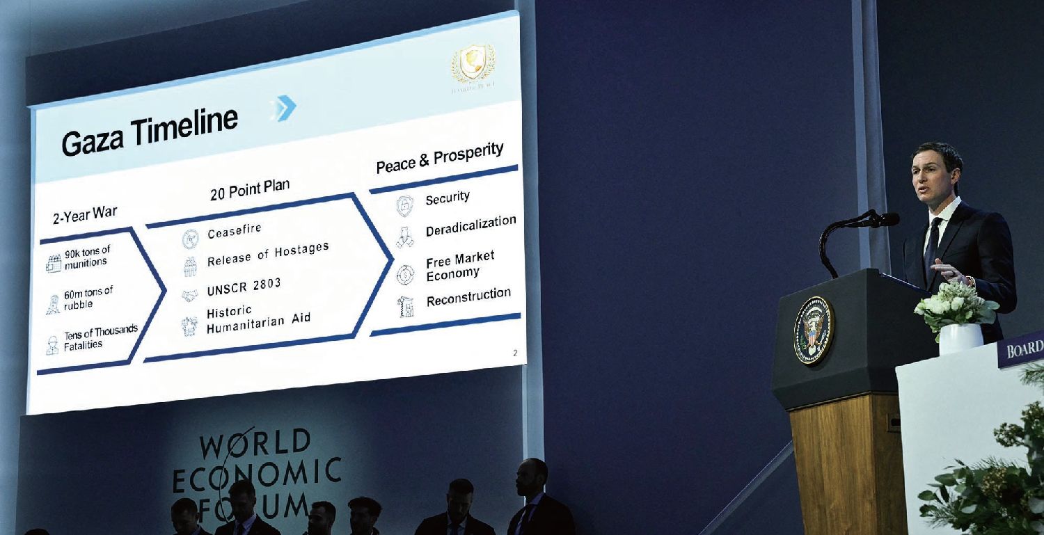 特朗普的女婿库什纳虽然没有任何官方职务,但与其他人一道担任加沙事务的非正式特使。他认为这一“总体规划”注定会取得“惊人的成功”。
