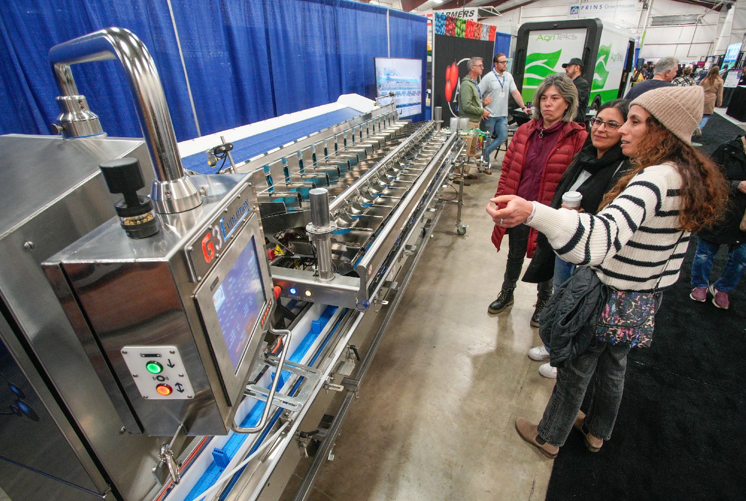 1月22日,人们在加拿大阿伯茨福德举办的2026年太平洋农业展上参观水果分拣包装机。