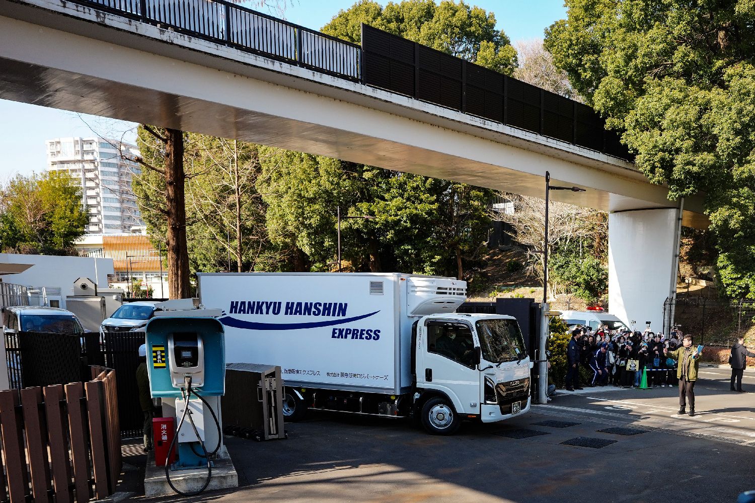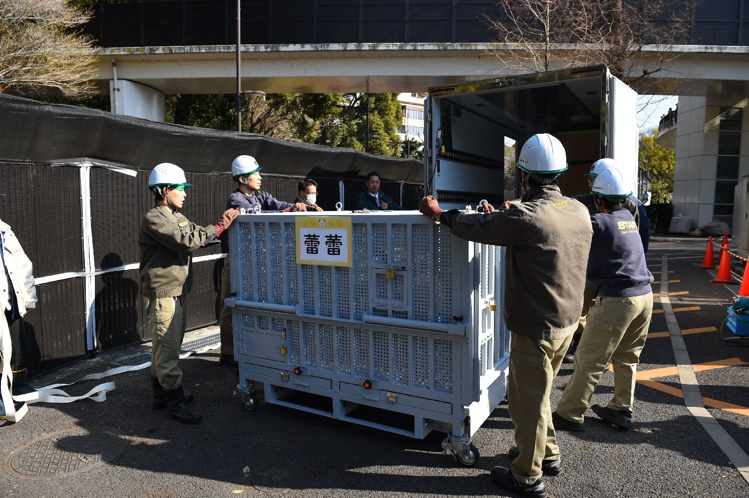 1月27日,在日本东京上野动物园,装有大熊猫“蕾蕾”的物流箱被运上卡车。