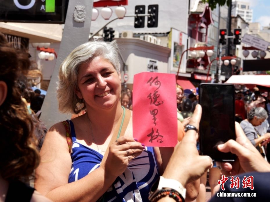 当地时间1月31日,巴西圣保罗,巴西中国友好协会偕圣保罗多家主要侨团、华校在华人聚集区圣保罗自由区广场举办“欢乐春节”游园会,书法、中医等中国元素吸引市民游客共庆农历马年春节。
