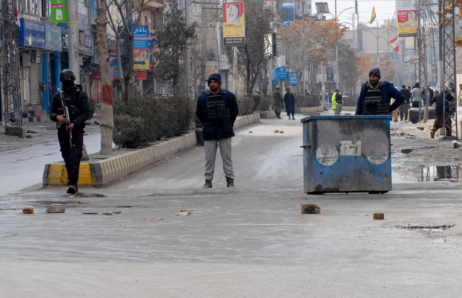 1月31日,在巴基斯坦西南部俾路支省奎达地区,安全人员封锁恐袭现场。(图片来源:本文图片均据新华社)