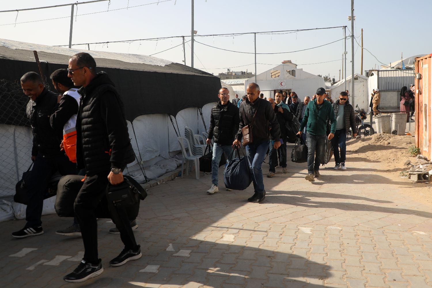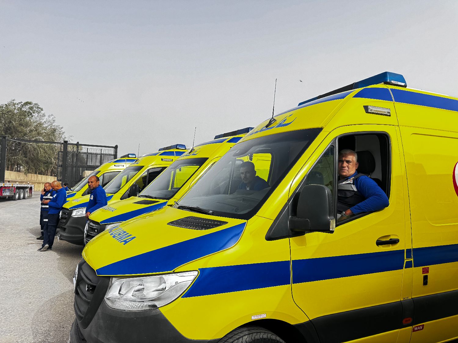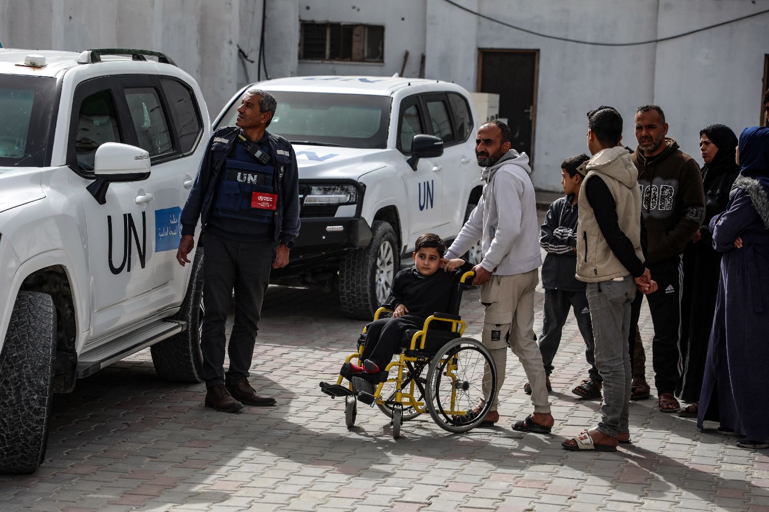2月2日,在加沙地带南部汗尤尼斯,巴勒斯坦工作人员准备前往拉法口岸。