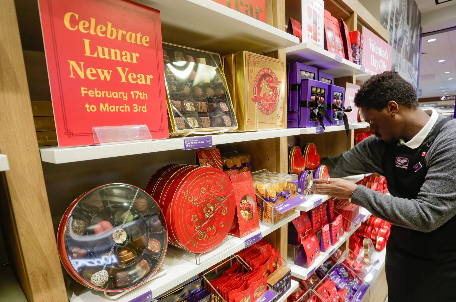 这是2月4日在加拿大温哥华一家巧克力店拍摄的春节主题巧克力。