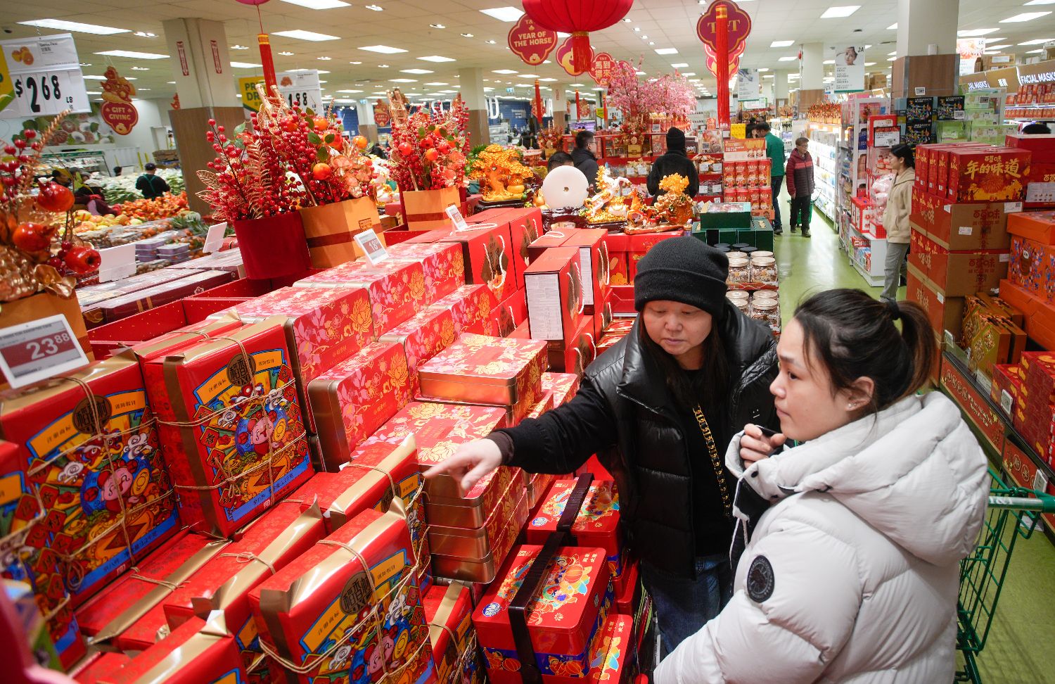 2月2日,顾客在加拿大温哥华一家超市内选购商品。