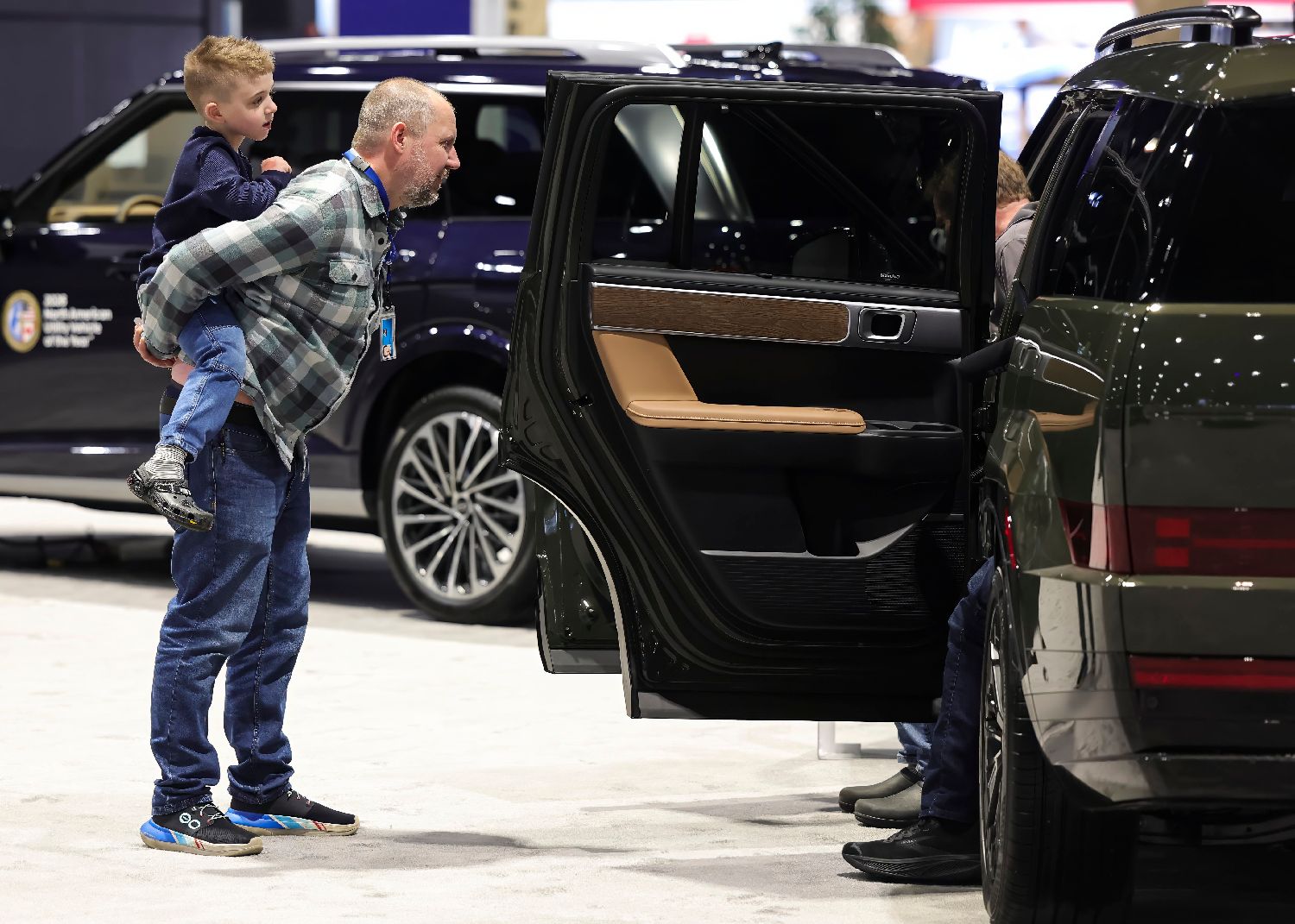 2月6日,在美国芝加哥麦考密克展览中心,人们观看展车。