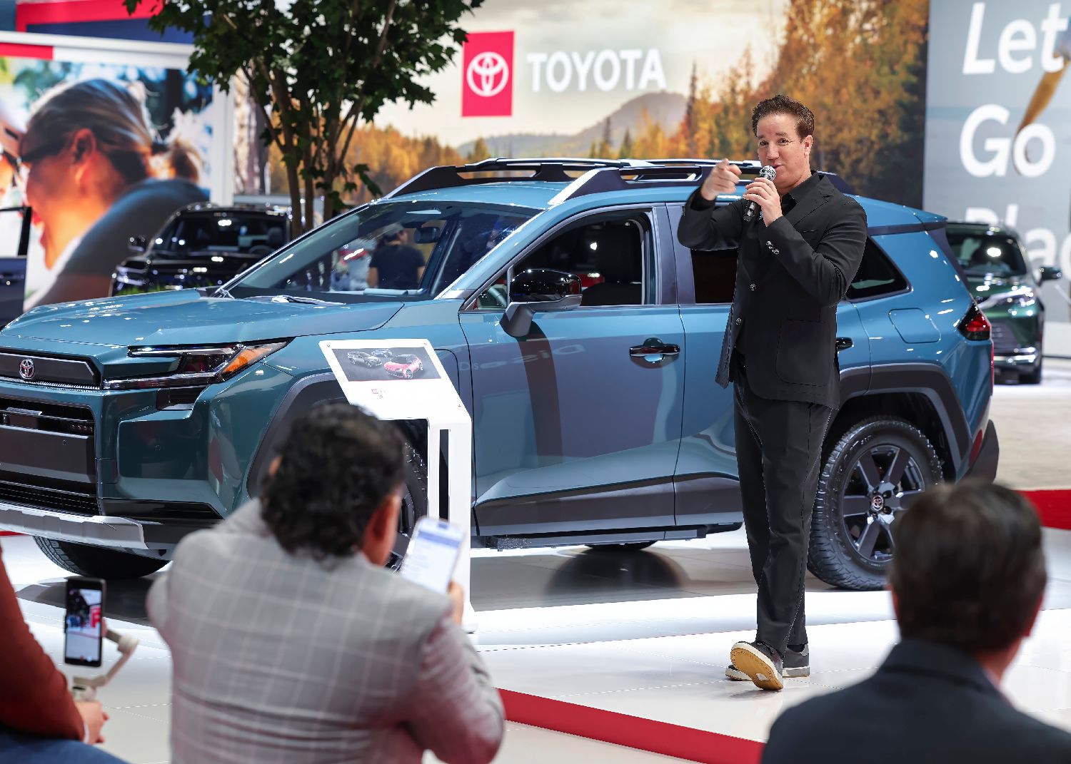 2月6日,在美国芝加哥麦考密克展览中心,一名发言人在丰田汽车展台介绍产品。