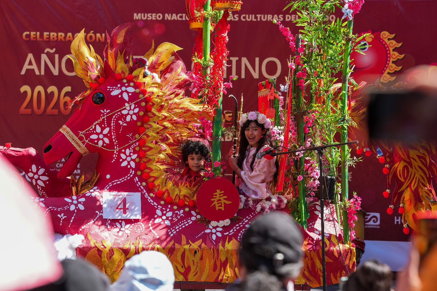 墨西哥首都墨西哥城历史中心区2月7日举行马年生肖装饰大赛暨巡游表演,吸引上万名民众到场观看,近距离感受中国马年春节的浓厚节庆氛围。