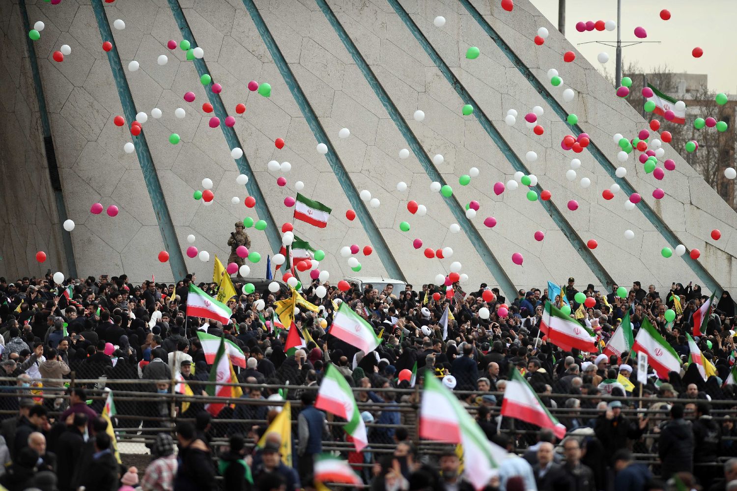 2月11日,在伊朗首都德黑兰,民众在阿扎迪广场参加纪念伊朗伊斯兰革命胜利47周年集会。