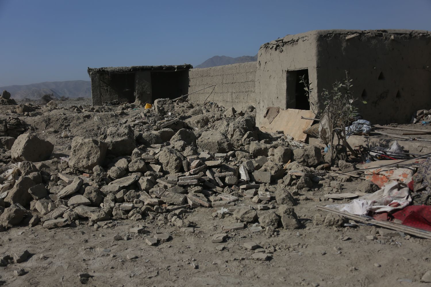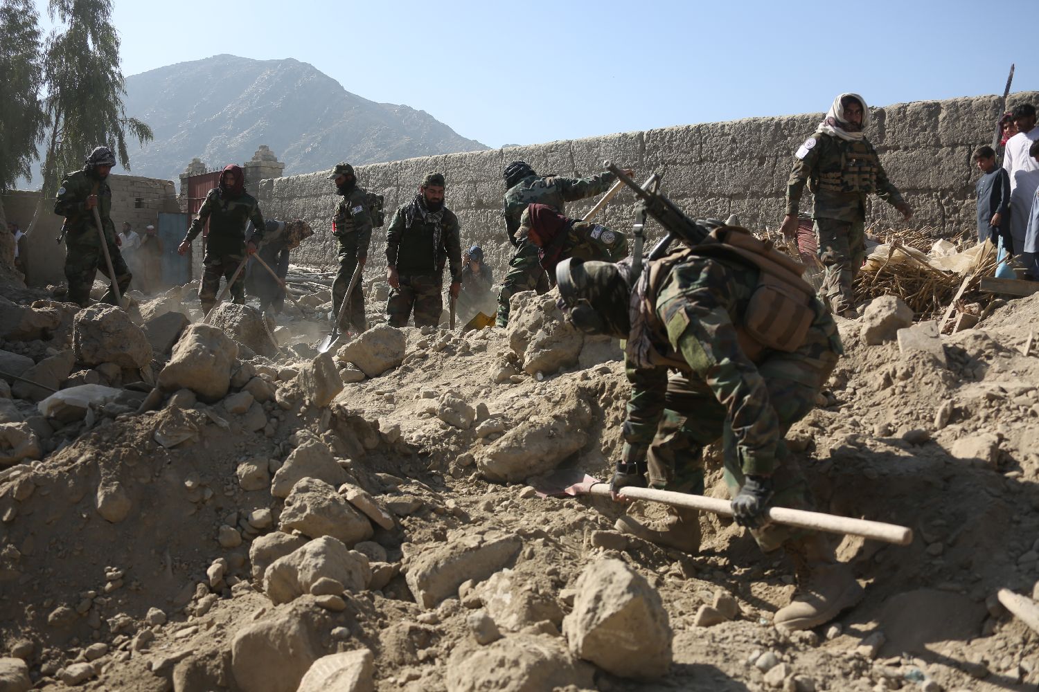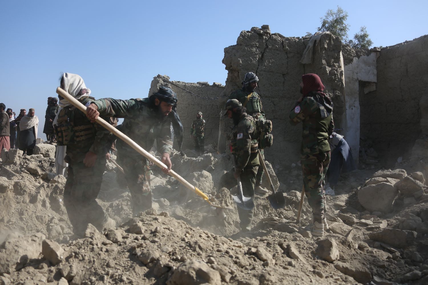 2月22日,在阿富汗东部楠格哈尔省,当地安全部队人员在遭空袭后的废墟中展开搜寻工作。