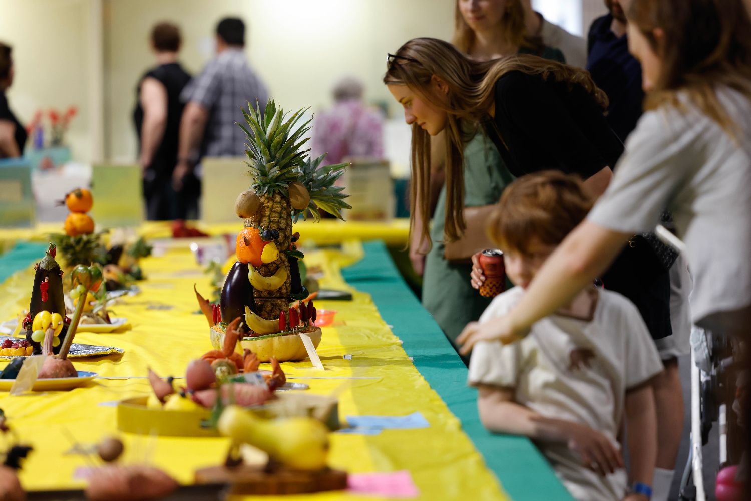 2月22日,在澳大利亚堪培拉举行的“皇家堪培拉秀”农展会上,人们欣赏水果装饰展品。(图片来源:本文图片均据新华社)