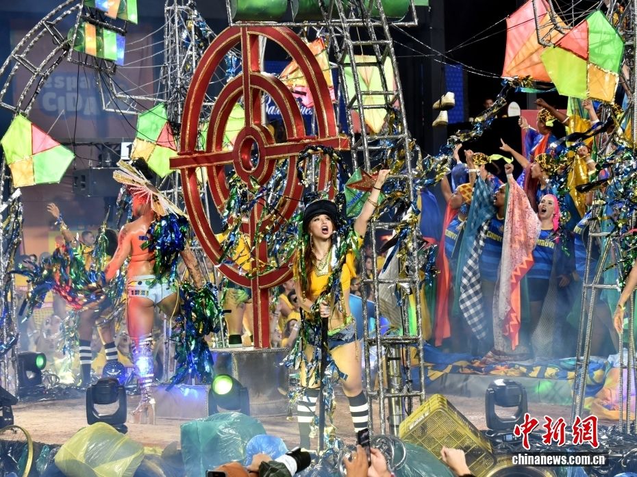 图为以融合足球、街头文化为特色的桑巴舞校新秀Dragões da Real在演出中。