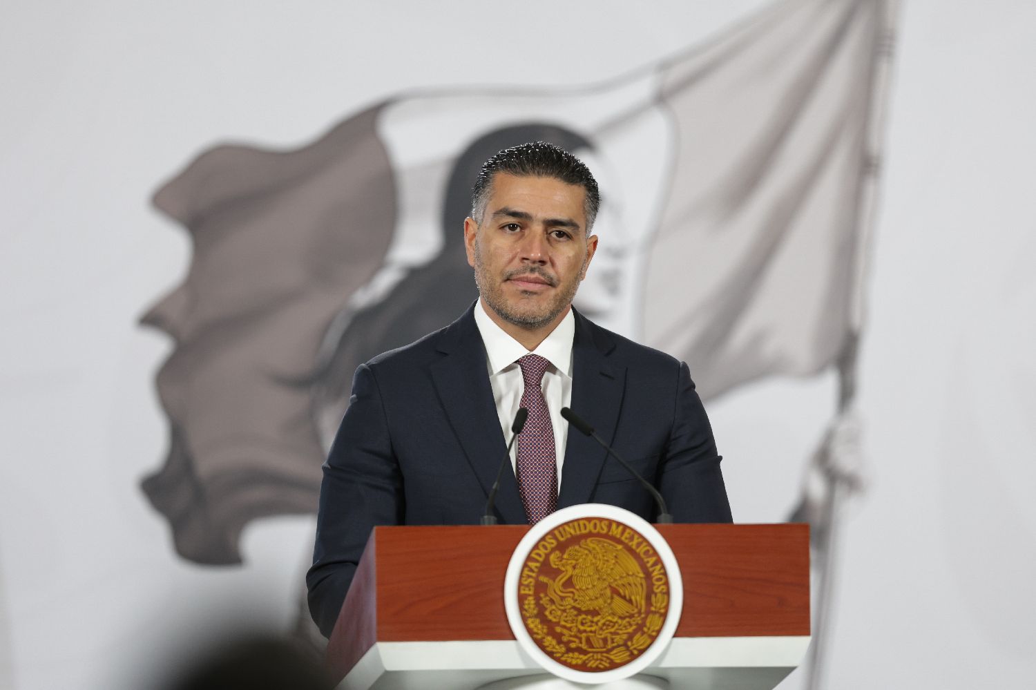 2月23日,在墨西哥首都墨西哥城,墨西哥安全部长奥马尔·加西亚·阿富奇出席新闻发布会。(图片来源:本文图片均据新华社)