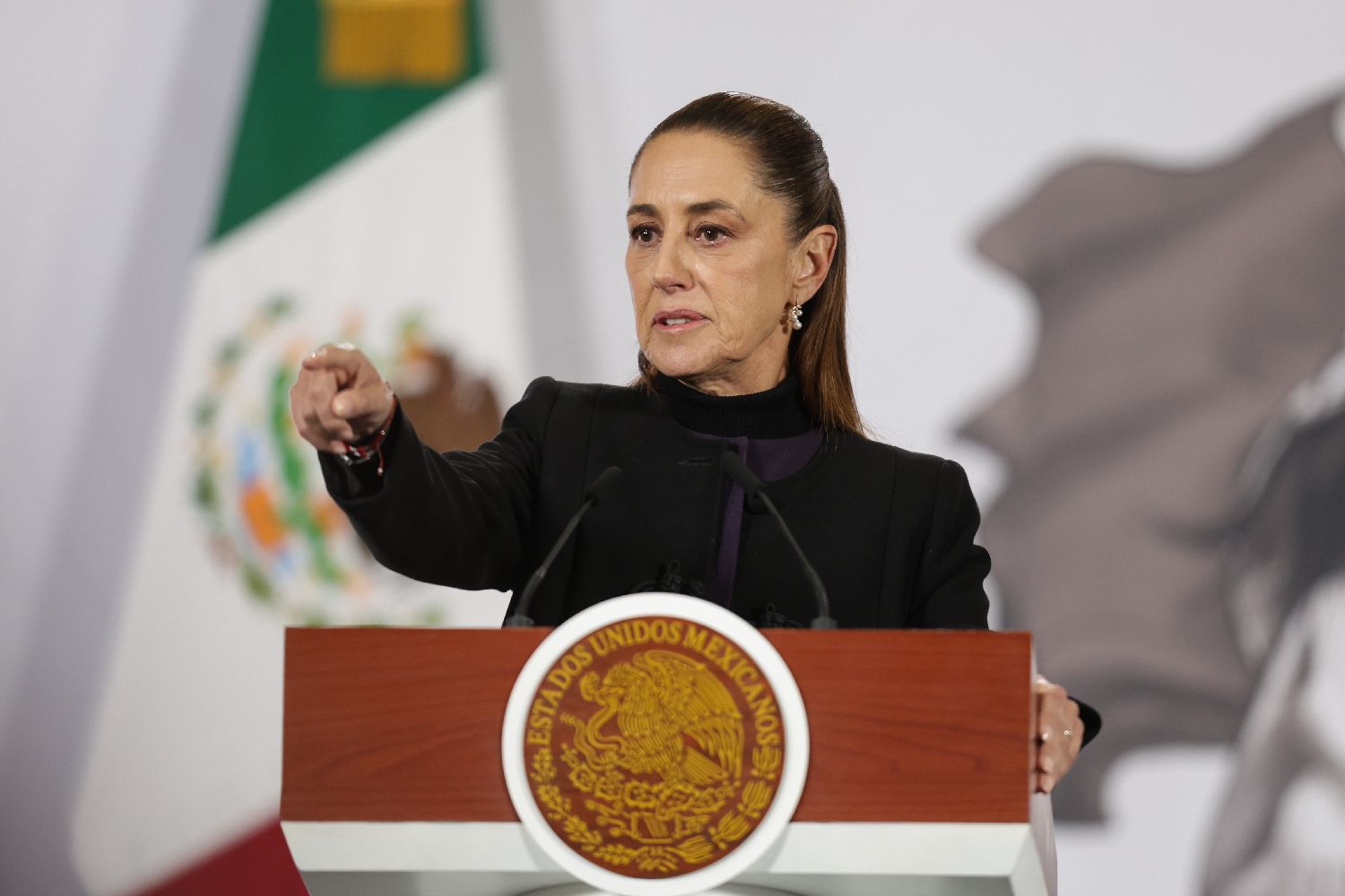 2月23日,在墨西哥首都墨西哥城,墨西哥总统辛鲍姆出席新闻发布会。