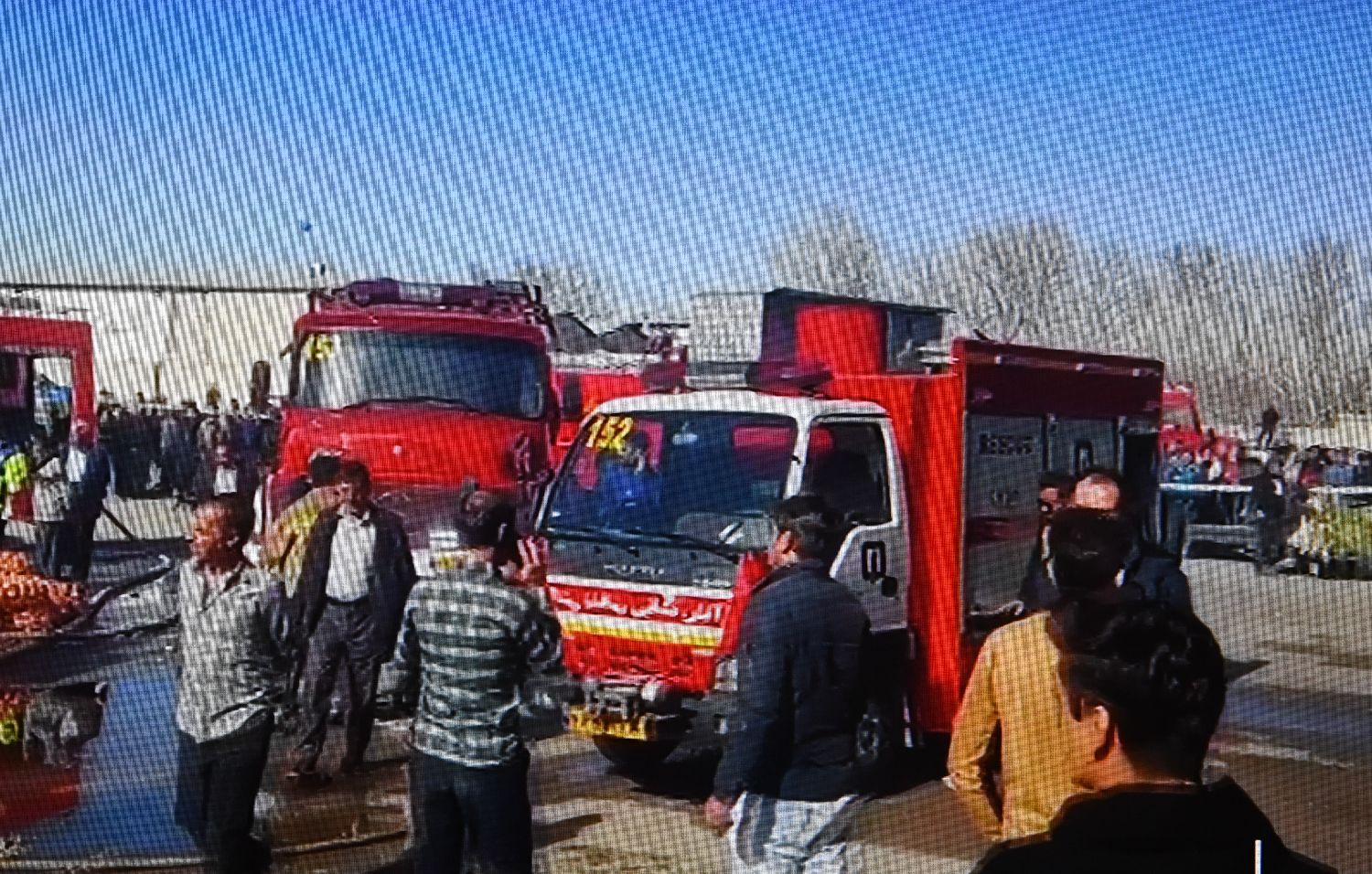 这张2月24日在伊朗德黑兰拍摄的伊朗国家电视台直播画面显示,救援人员聚集在坠机现场附近。