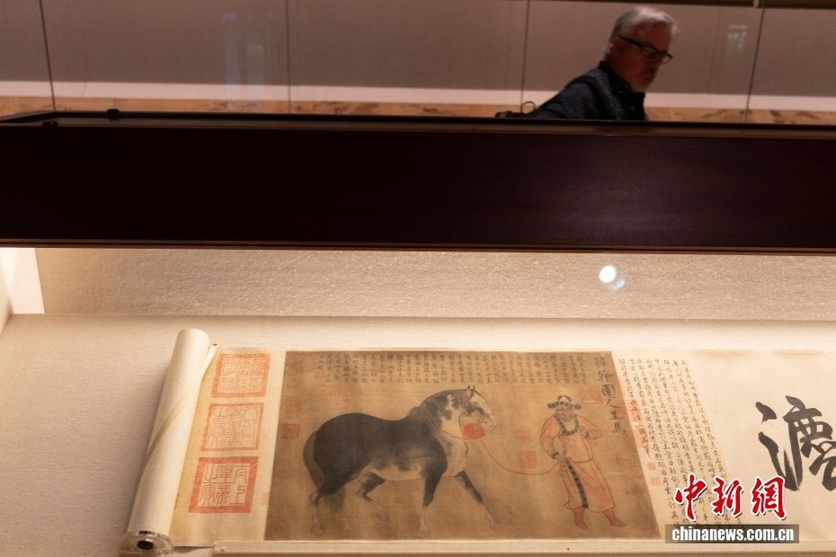 当地时间2月26日,美国纽约大都会博物馆,观众参观“圉人呈马图卷”。(图片来源:本文图片均据中新网)