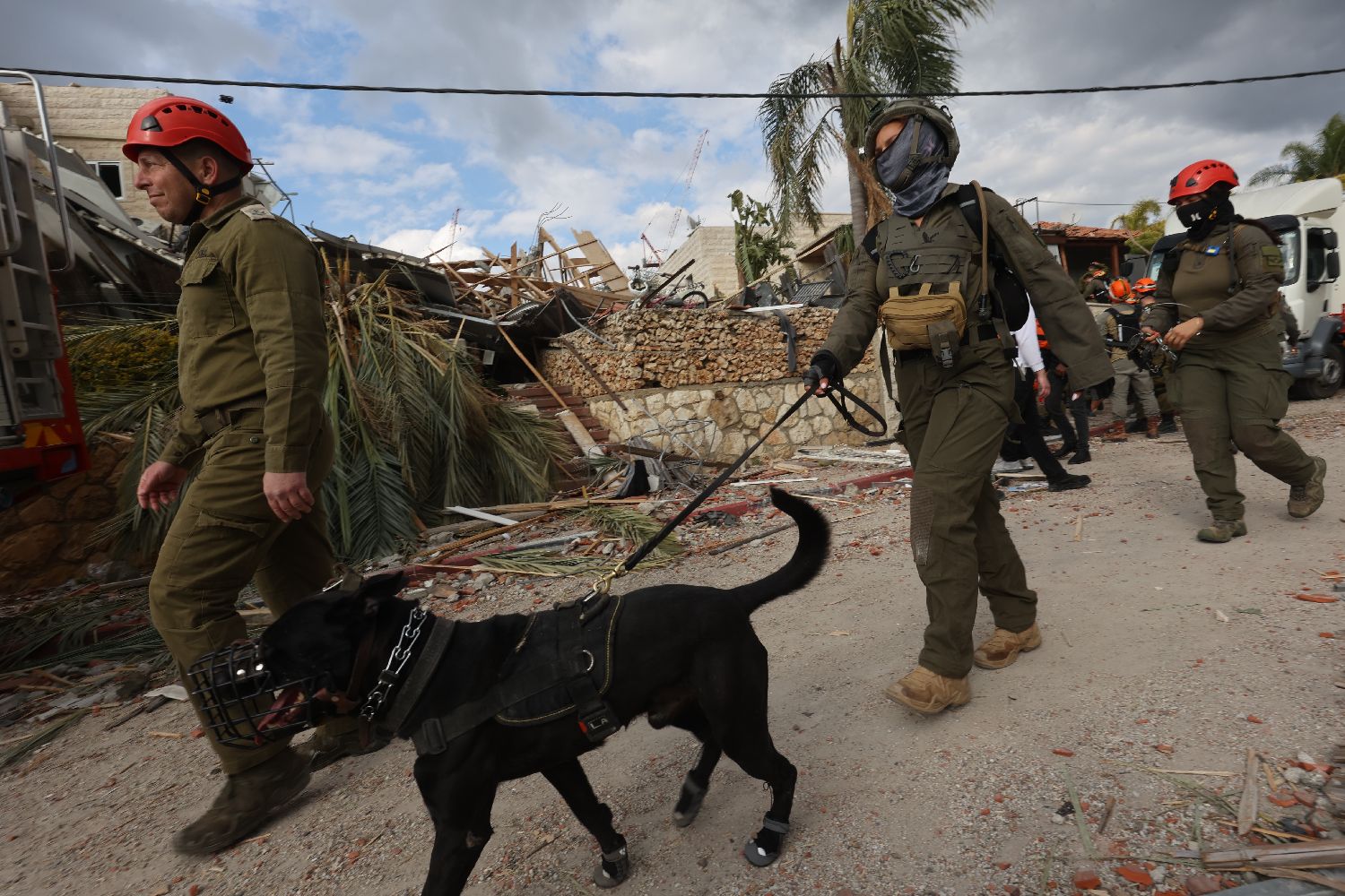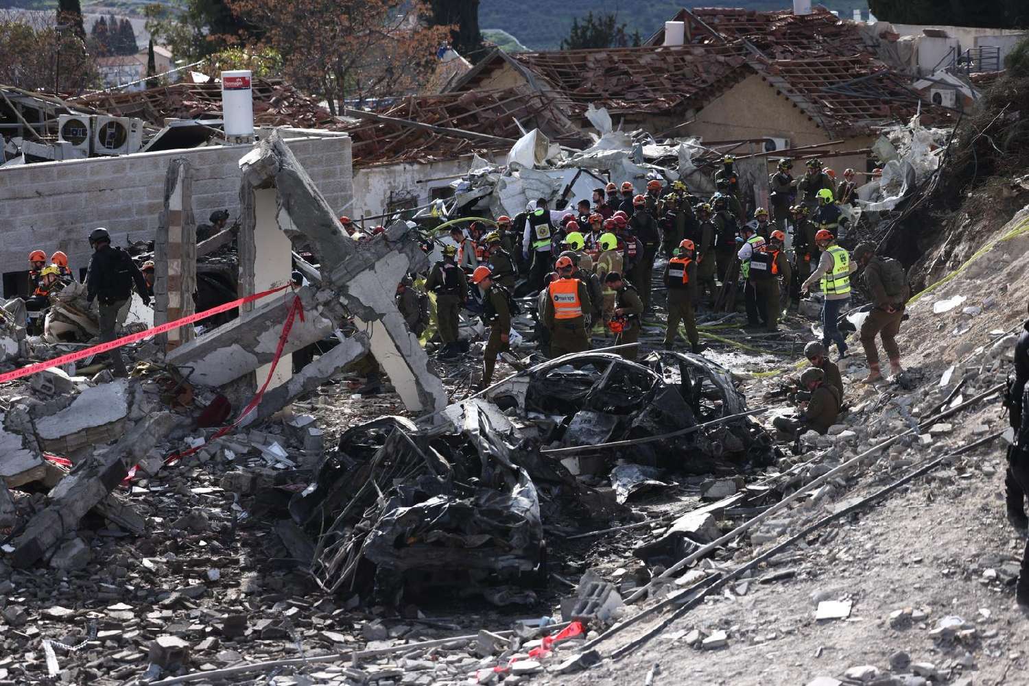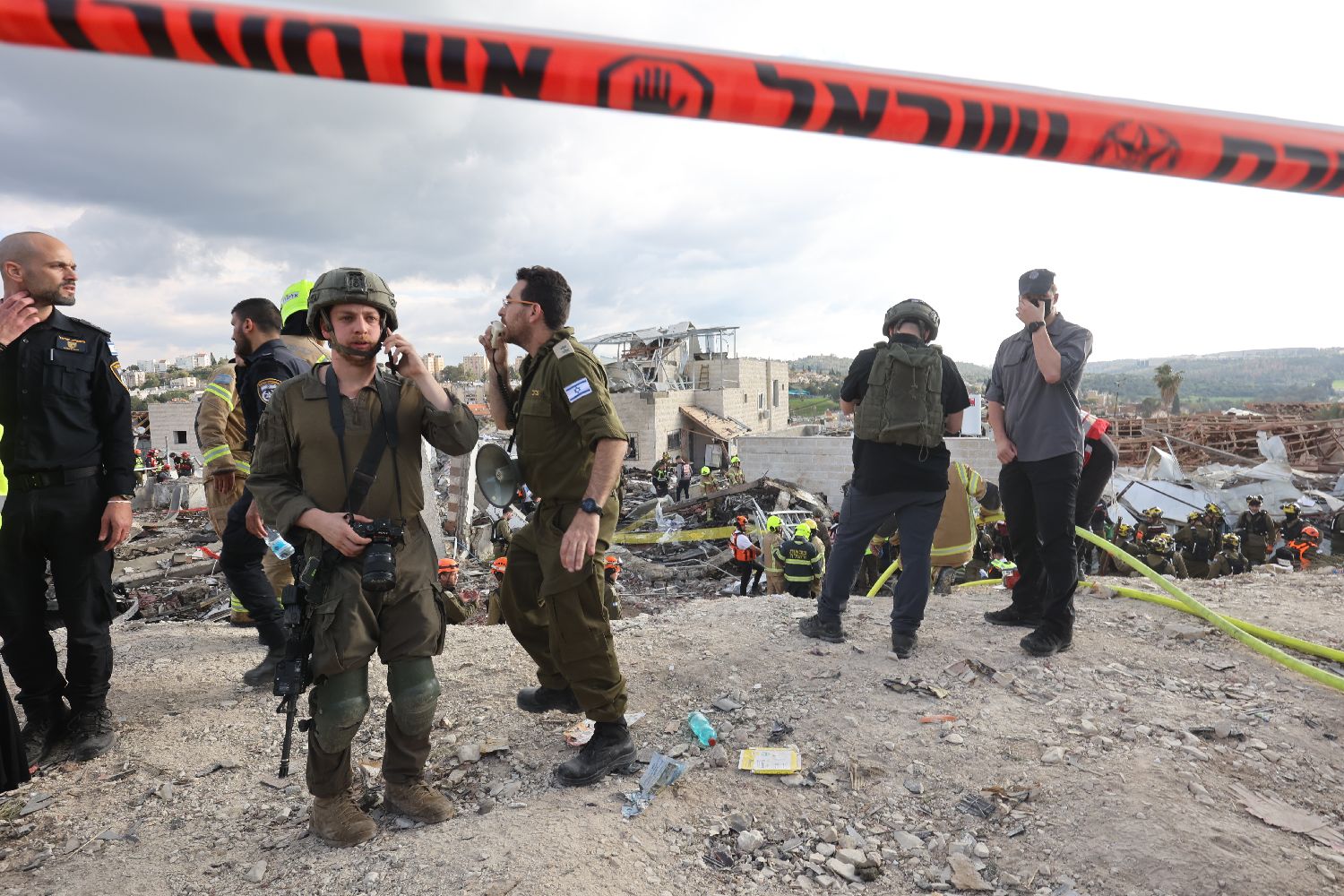 3月1日,救援人员在耶路撒冷西部城镇贝特谢梅什的导弹袭击现场工作。