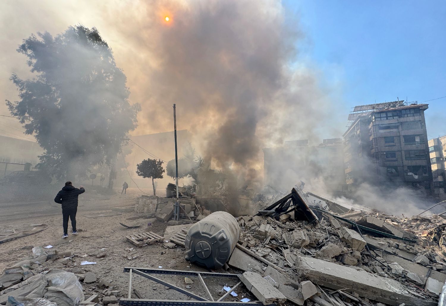 3月3日,在黎巴嫩首都贝鲁特南郊,一名男子查看遭以军袭击后的废墟。