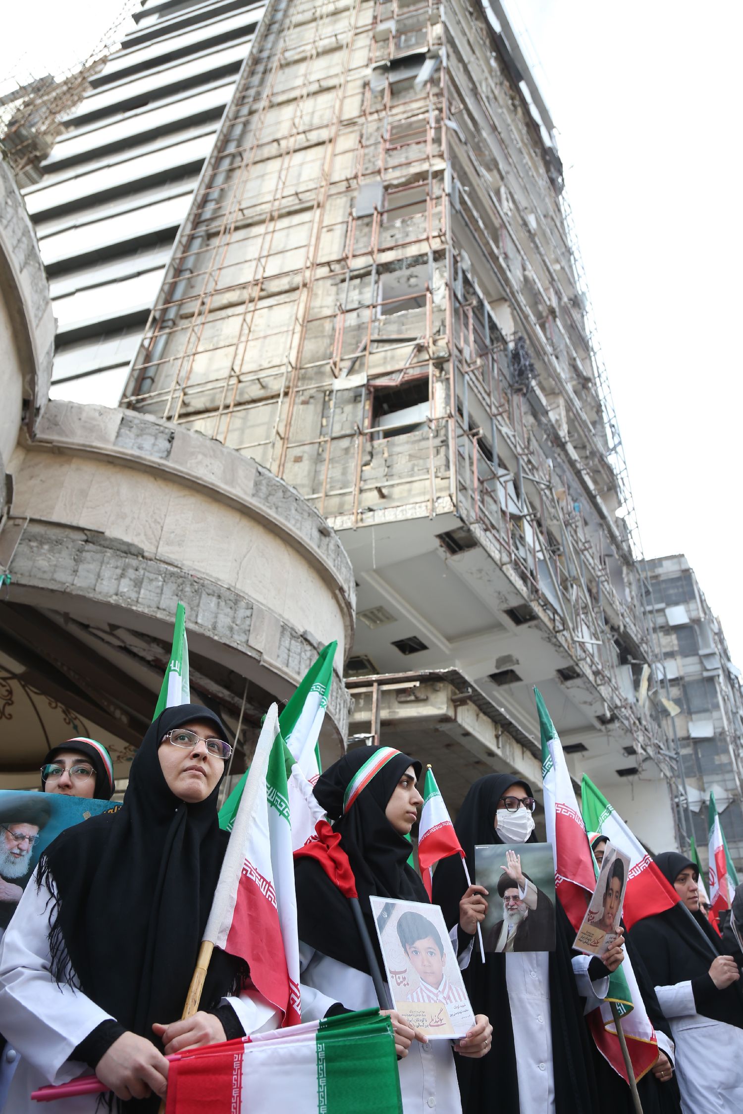 3月7日,在伊朗首都德黑兰,集会者在遭袭的甘地医院前挥舞伊朗国旗。(图片来源:本文图片均据新华社)