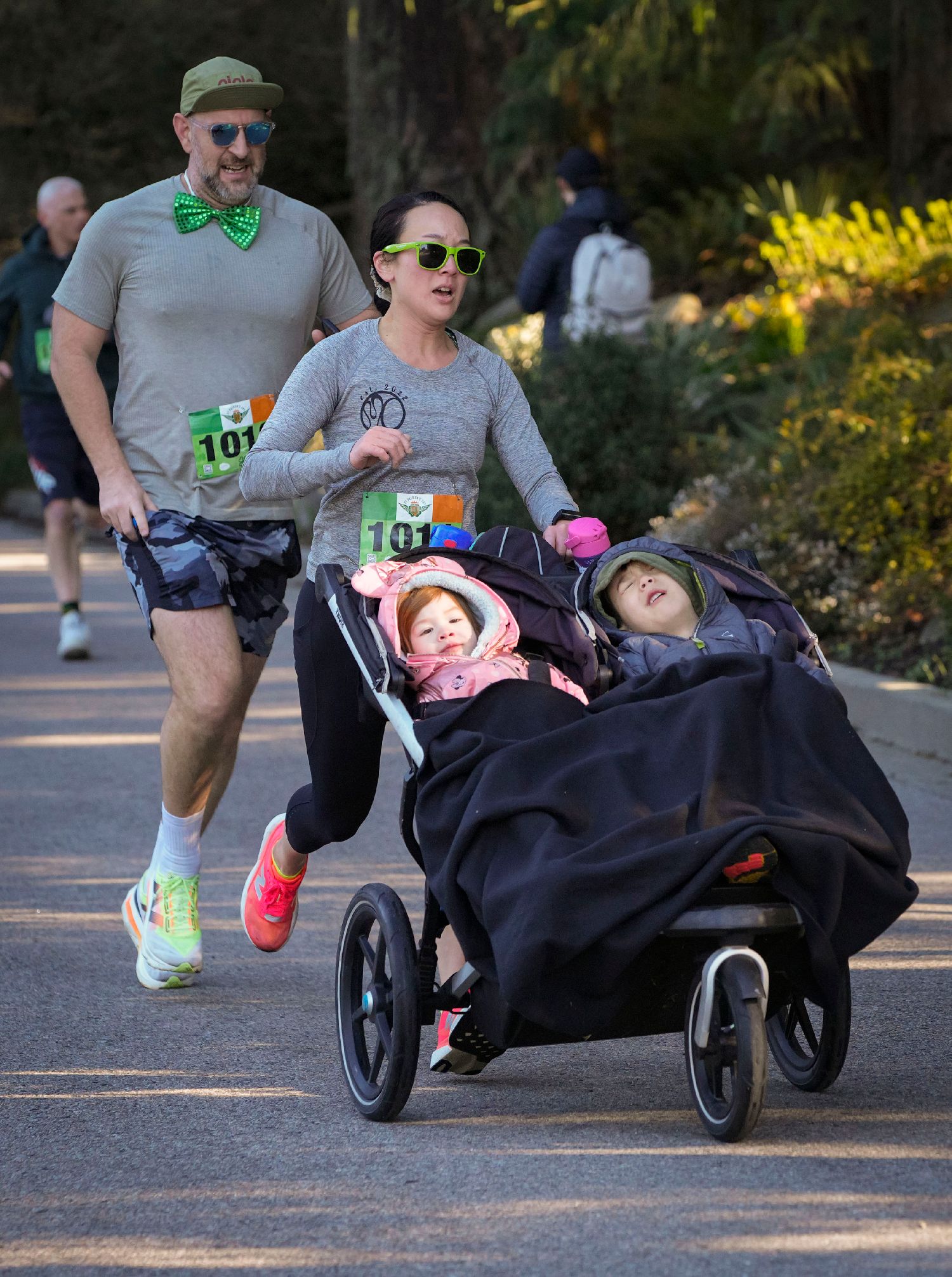 3月14日,人们在加拿大温哥华的斯坦利公园参加5公里跑活动,迎接圣帕特里克节。