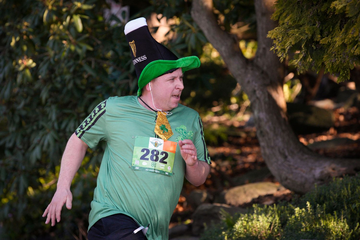 3月14日,一名男子在加拿大温哥华的斯坦利公园参加5公里跑活动,迎接圣帕特里克节。