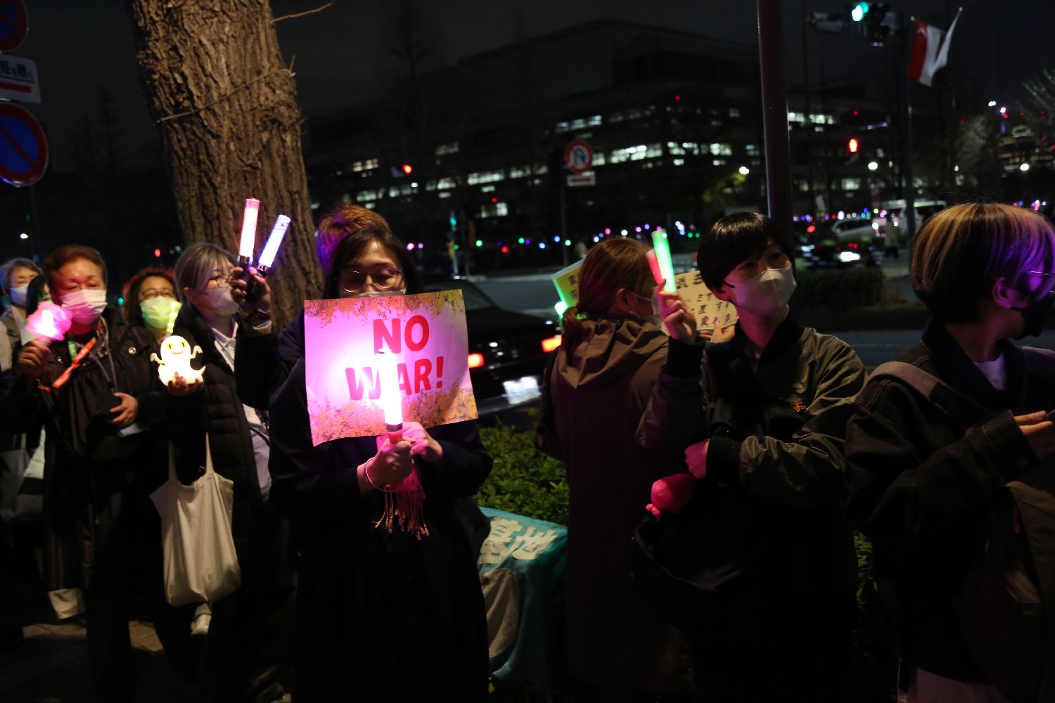 中新社报道,当晚,现场抗议者手举“不要战争”“反对修宪”等标语牌,呼吁维护和平宪法,守护和平。