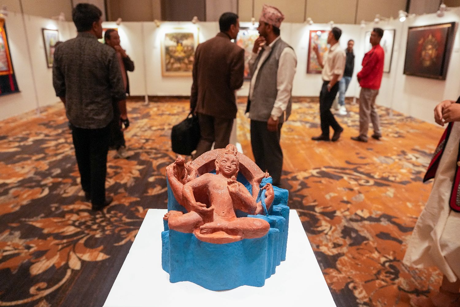 现场展出的尼泊尔风情陶俑。