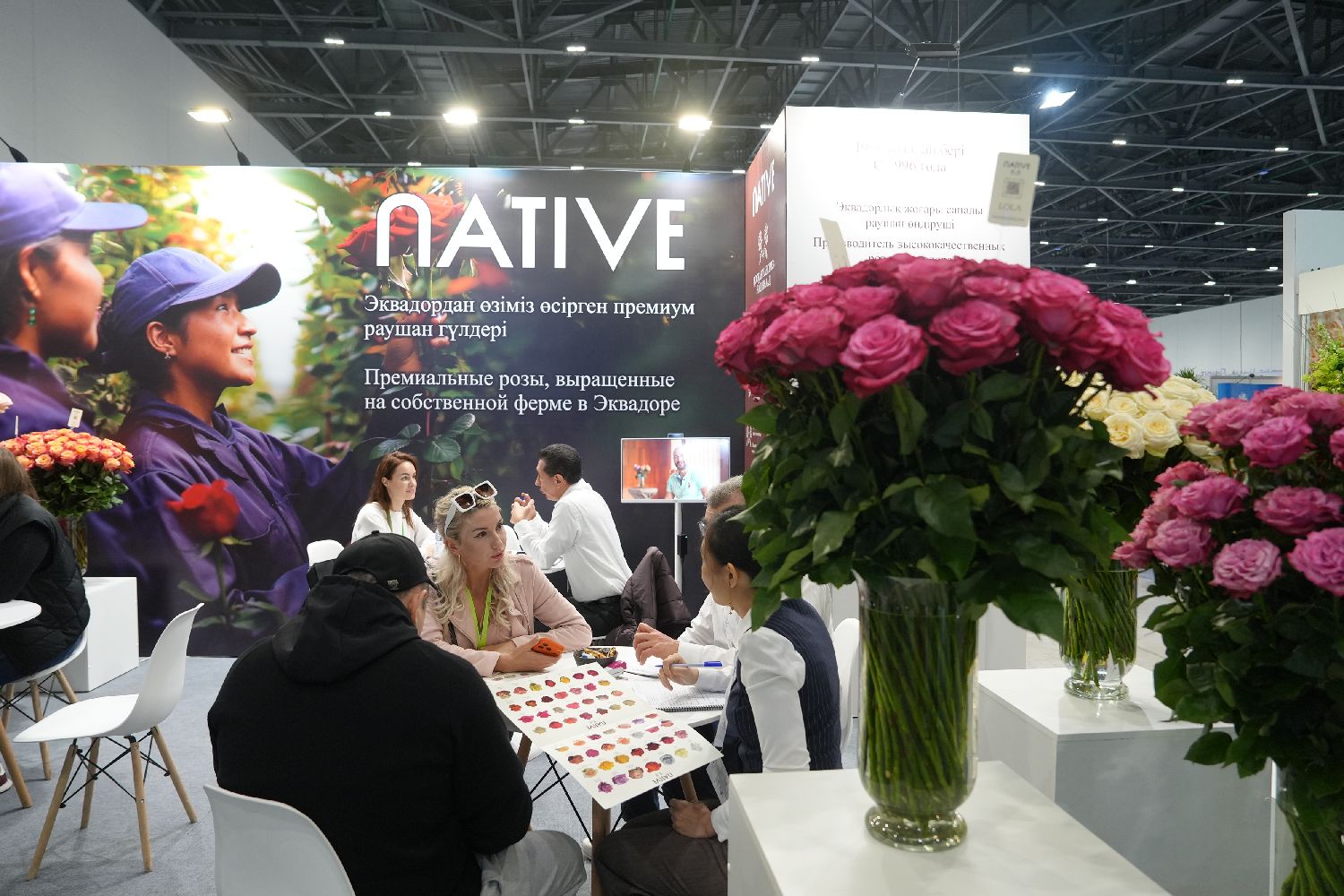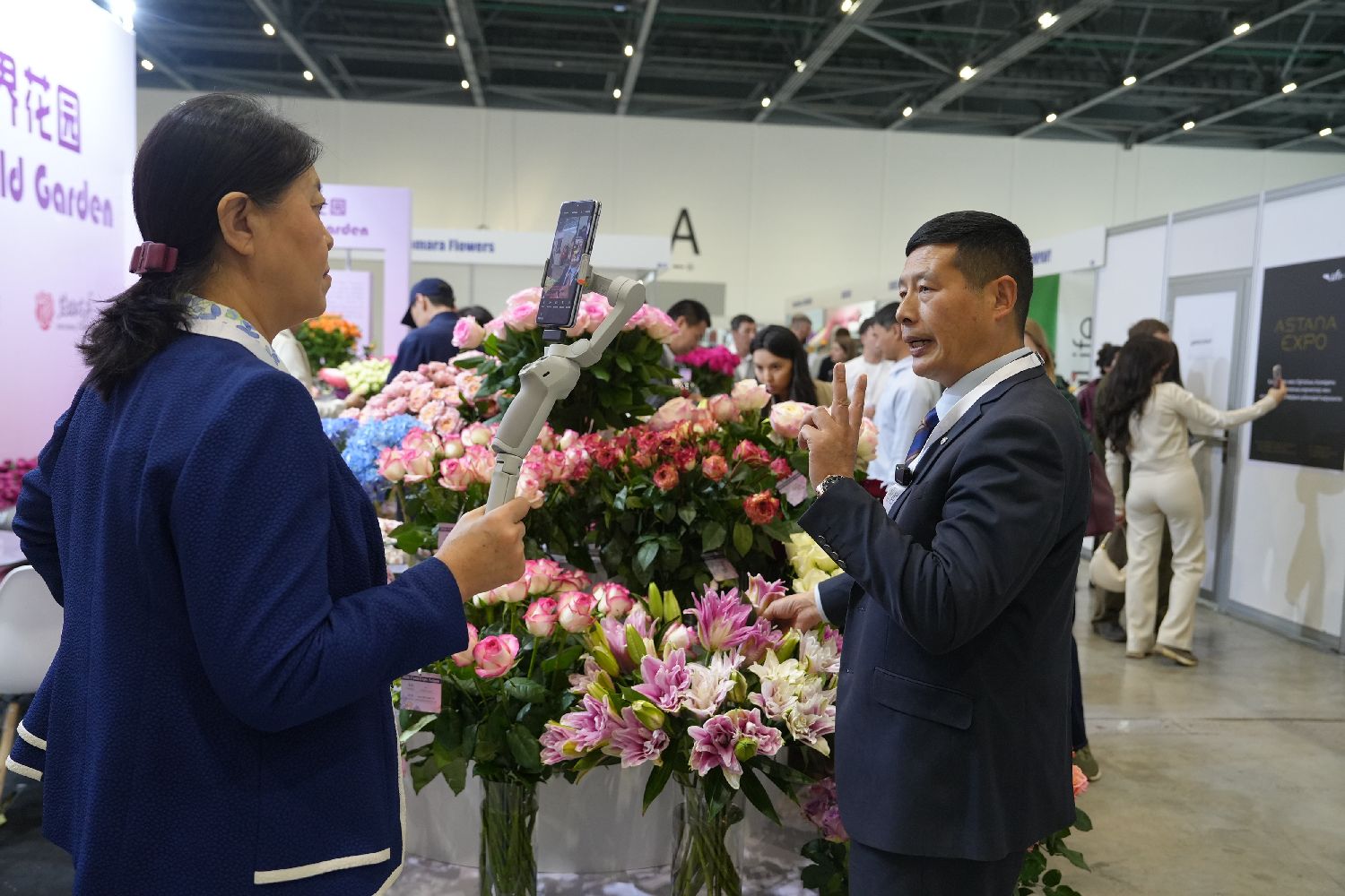 当地时间4月8日,哈萨克斯坦阿斯塔纳,第十三届国际花卉与园艺展在世博园国际展览中心开幕。来自荷兰、泰国、中国、肯尼亚、厄瓜多尔等超过20个国家和地区的220多家企业参展,集中展示全球花卉园艺领域的代表性品种和前沿技术。