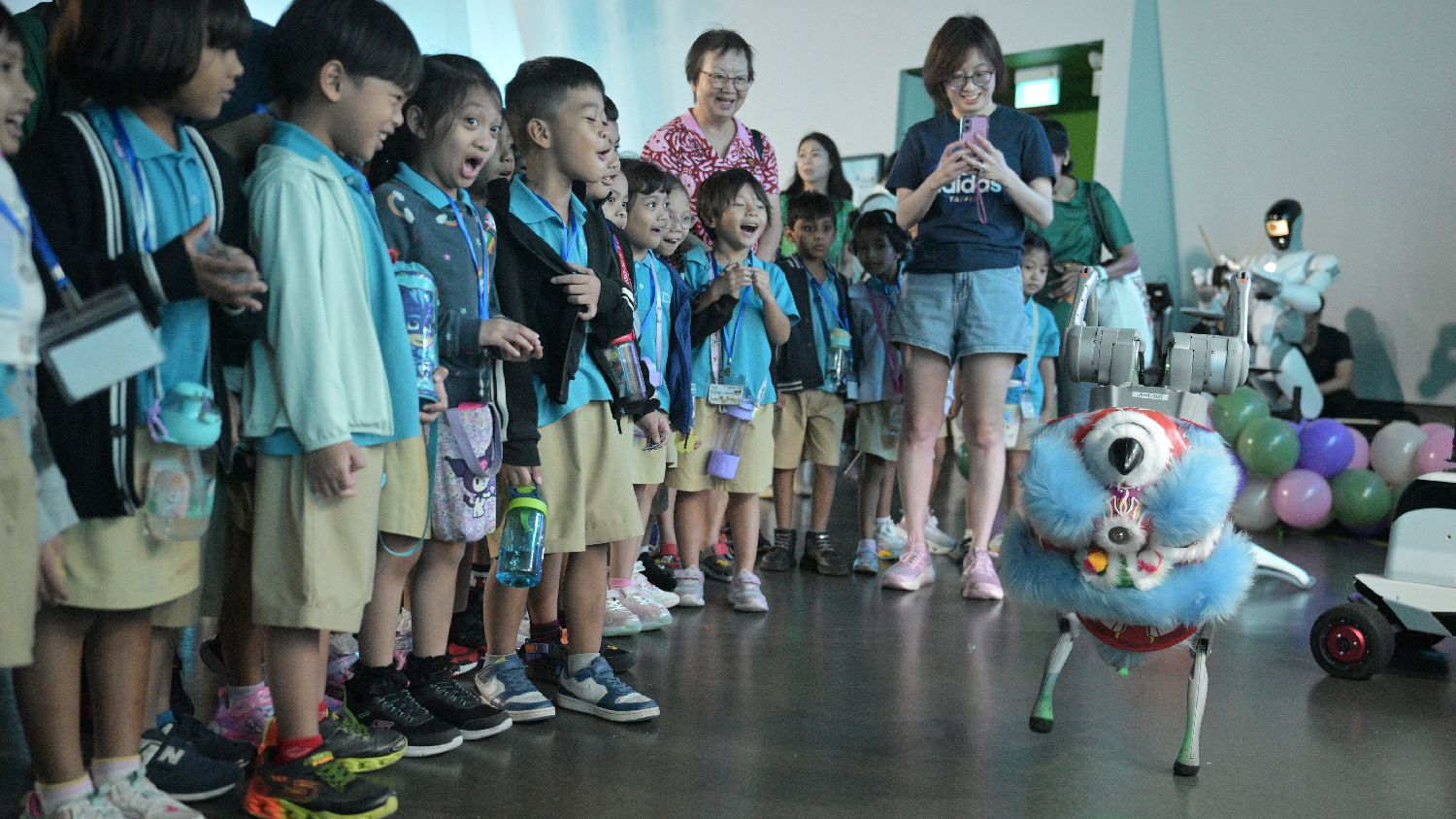 4月9日,儿童们在新加坡科学中心举行的“机器人节2026”活动上观看机器狗表演。(图片来源:本文图片均据新华社)