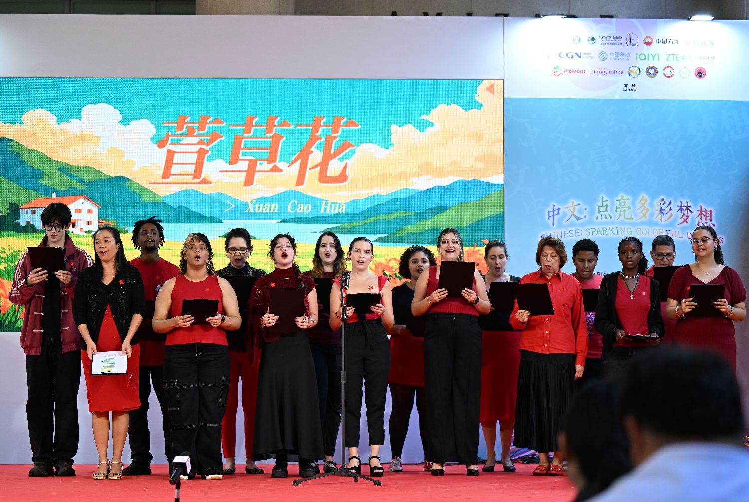 4月15日,在巴西里约热内卢天主教大学举办的“国际中文日”庆祝活动上,巴西中文爱好者合唱中文歌曲。(图片来源:本文图片均据新华社)