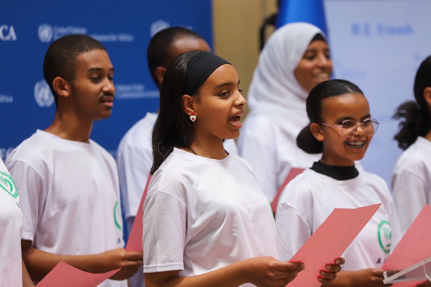 4月16日,在埃塞俄比亚首都亚的斯亚贝巴举办的“国际中文日”庆祝活动上,表演者合唱歌曲。
