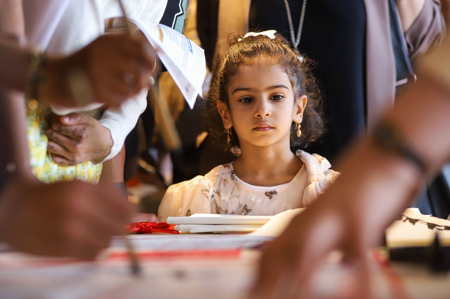 4月16日,在埃塞俄比亚首都亚的斯亚贝巴举办的“国际中文日”庆祝活动上,女孩在观赏书法。