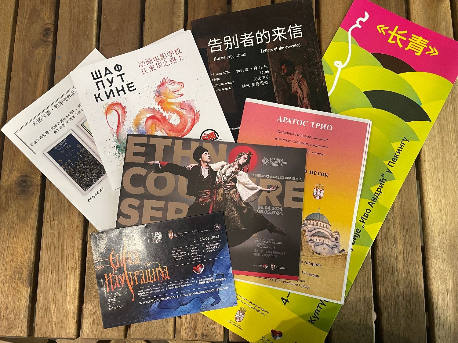 图为今年以来,北京塞尔维亚文化中心举办的各类文化交流活动的宣传册。(图片来源:欧洲时报特约记者李非 摄)