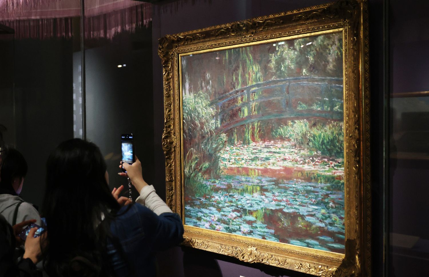 4月3日,观众在莫奈的《睡莲池》前参观拍摄。
