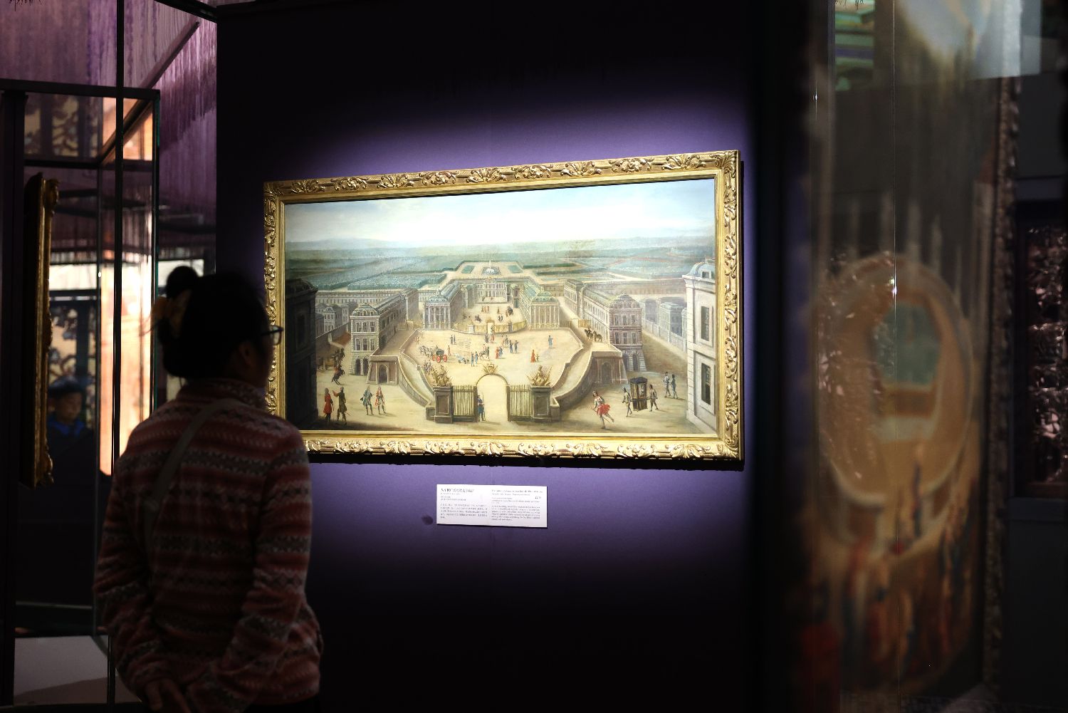 4月3日,一幅名为《从军械广场鸟瞰凡尔赛宫》(约1700年—1725)的布面油画作品吸引观众参观。