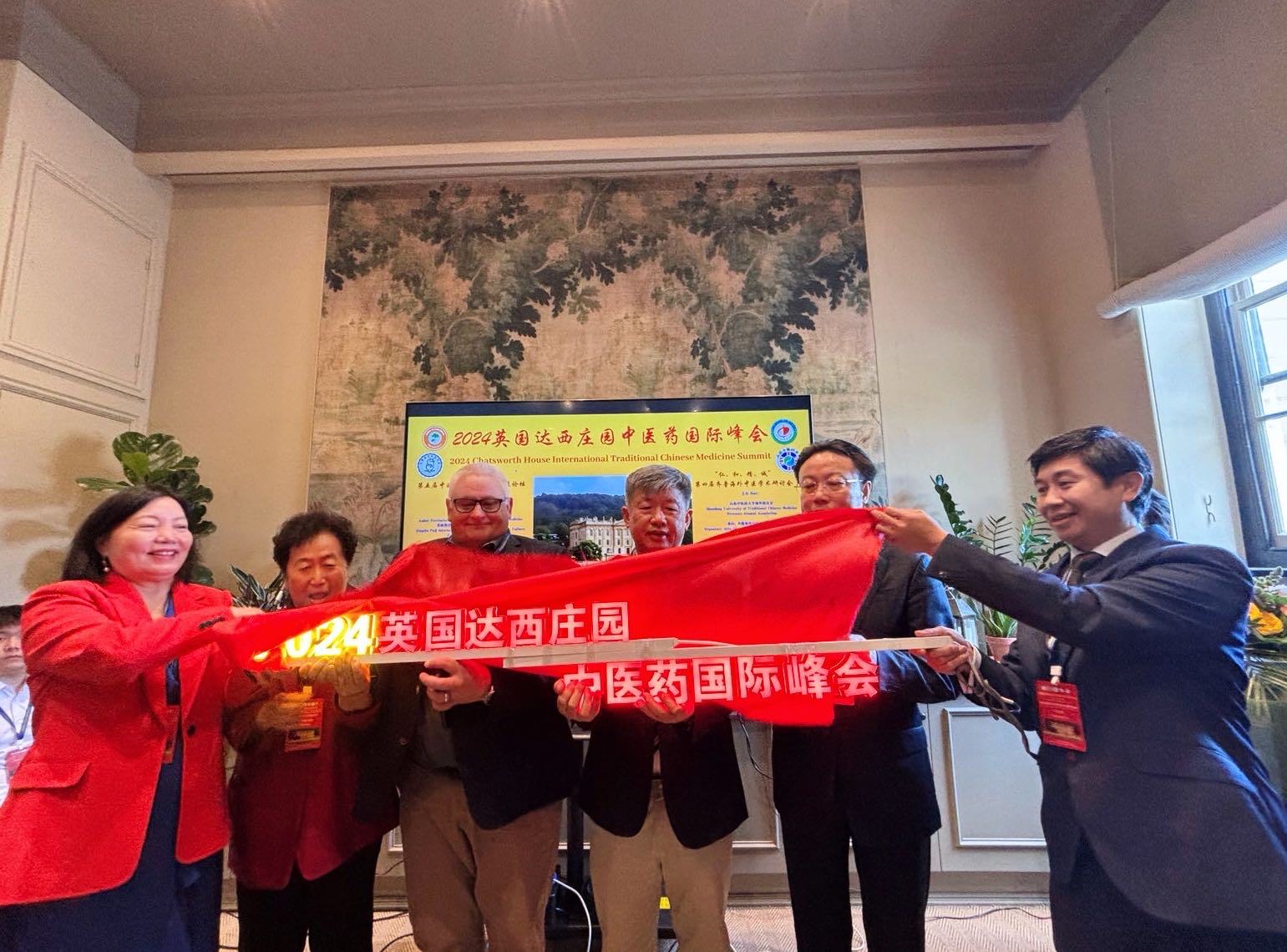 主要嘉宾们为2024英国达西庄园中医药国际峰会召开剪彩。