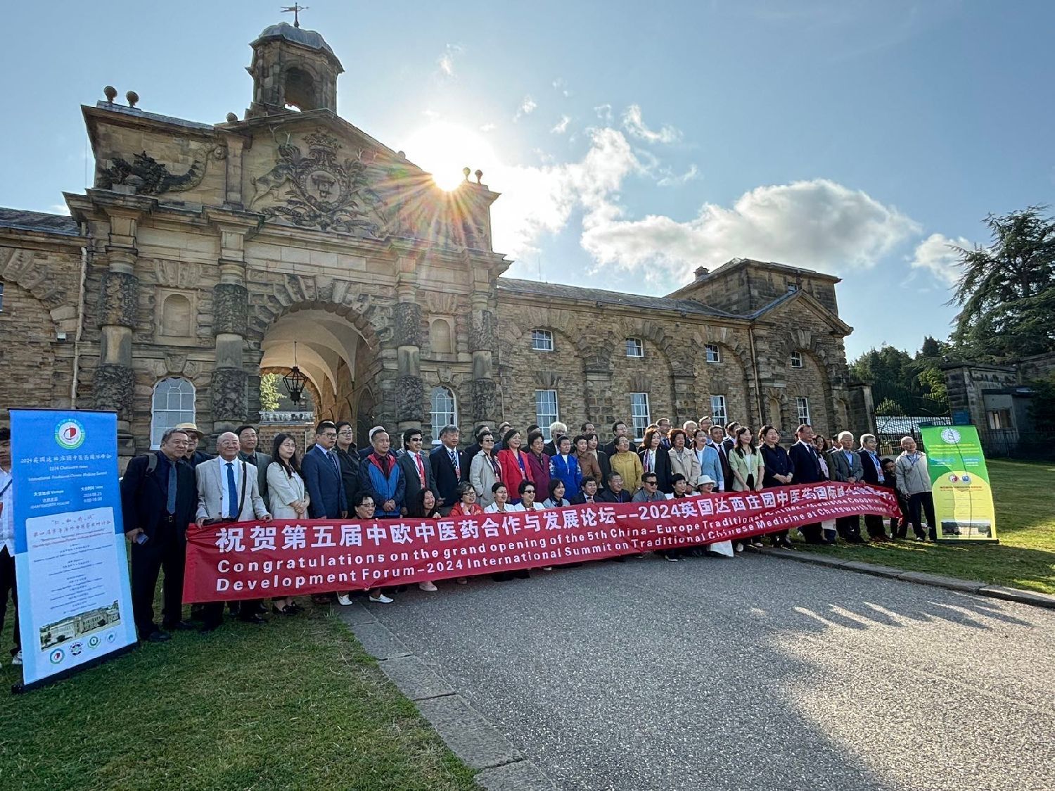 出席2024英国达西庄园中医药国际峰会的嘉宾合影。