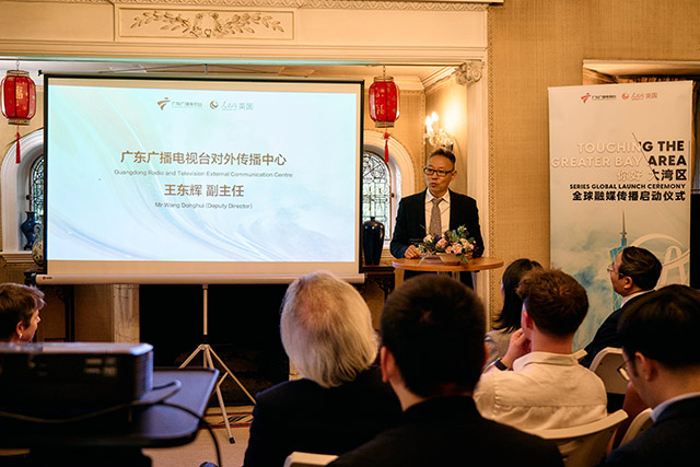 广东广播电视台对外传播中心副主任王东辉在致辞中表示,节目从英国年轻学子的视角出发,纪录他们在实地体验粤港澳大湾区的经济、社会、文化等过程中的所思所想,促进中英青年学生多维度的交流与友谊。他同时表示,粤港澳大湾区不仅是中国经济发展的重要引擎,也是中华文化传承与创新的重要阵地。通过这个项目,让外国年轻一代了解大湾区的魅力与潜力,进而感知真实的粤港澳大湾区,感知中华优秀传统文化。期待未来加强与英国及世界各地媒体机构的交流与合作,共同推动各国文化的交流与传播。