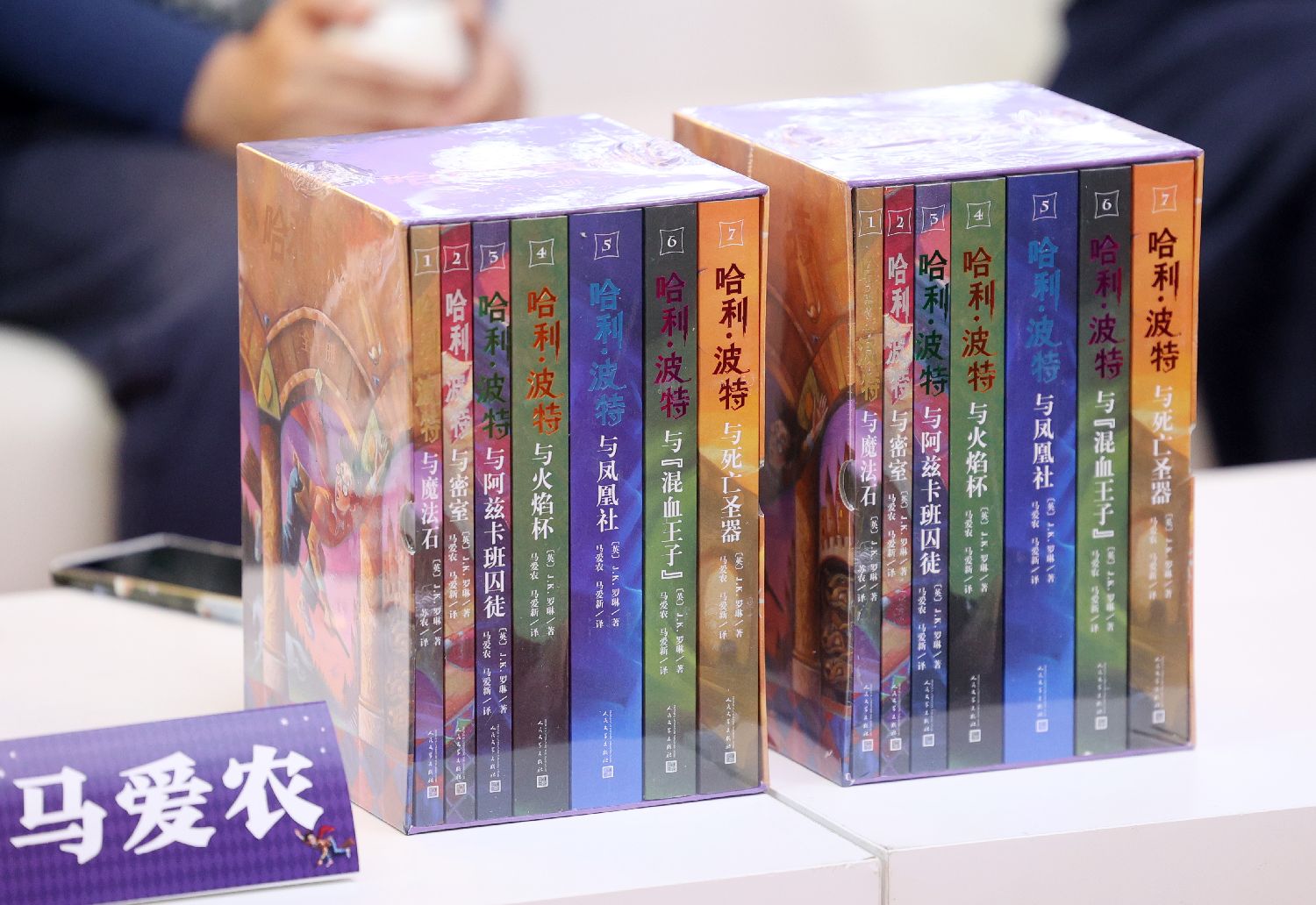 活动现场展示人民文学出版社出版的《哈利·波特》中文书籍。