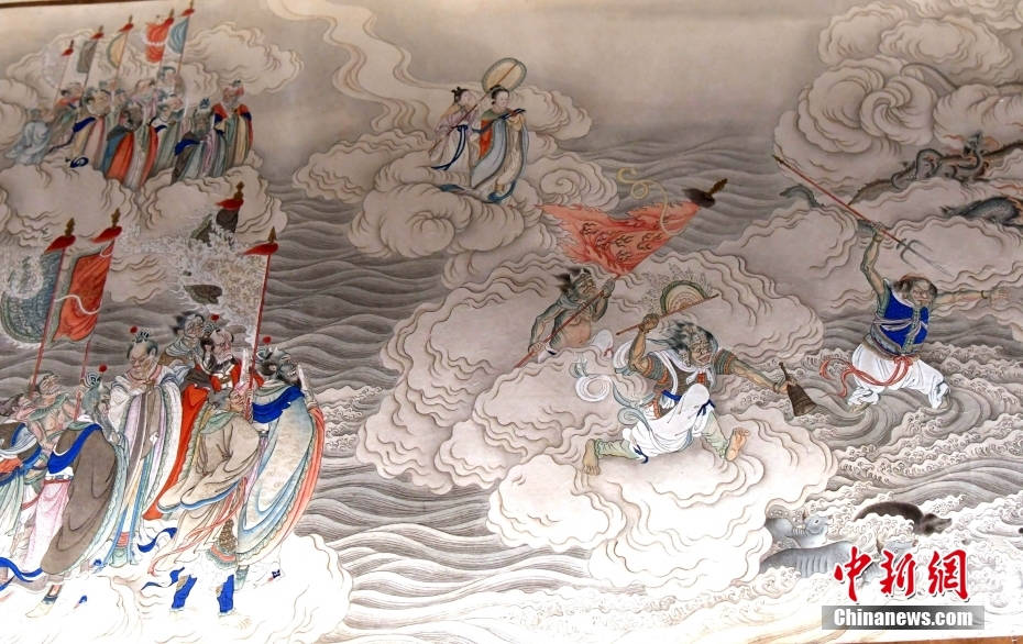 展出的清朝画家贾全《下元水官图》局部画面。