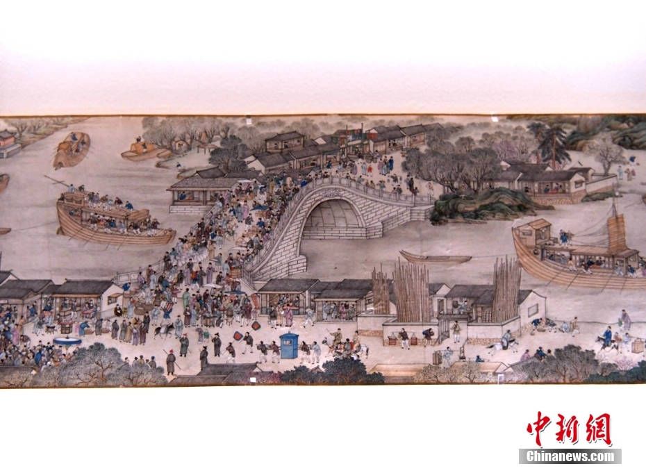 展出的清朝画家姚文瀚《仿清明上河图》局部画面。