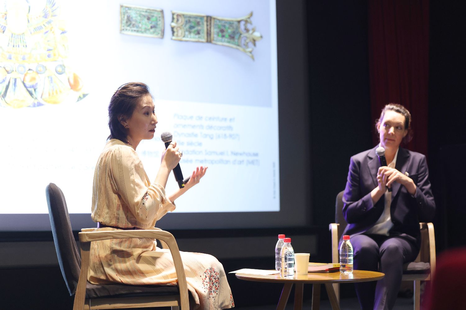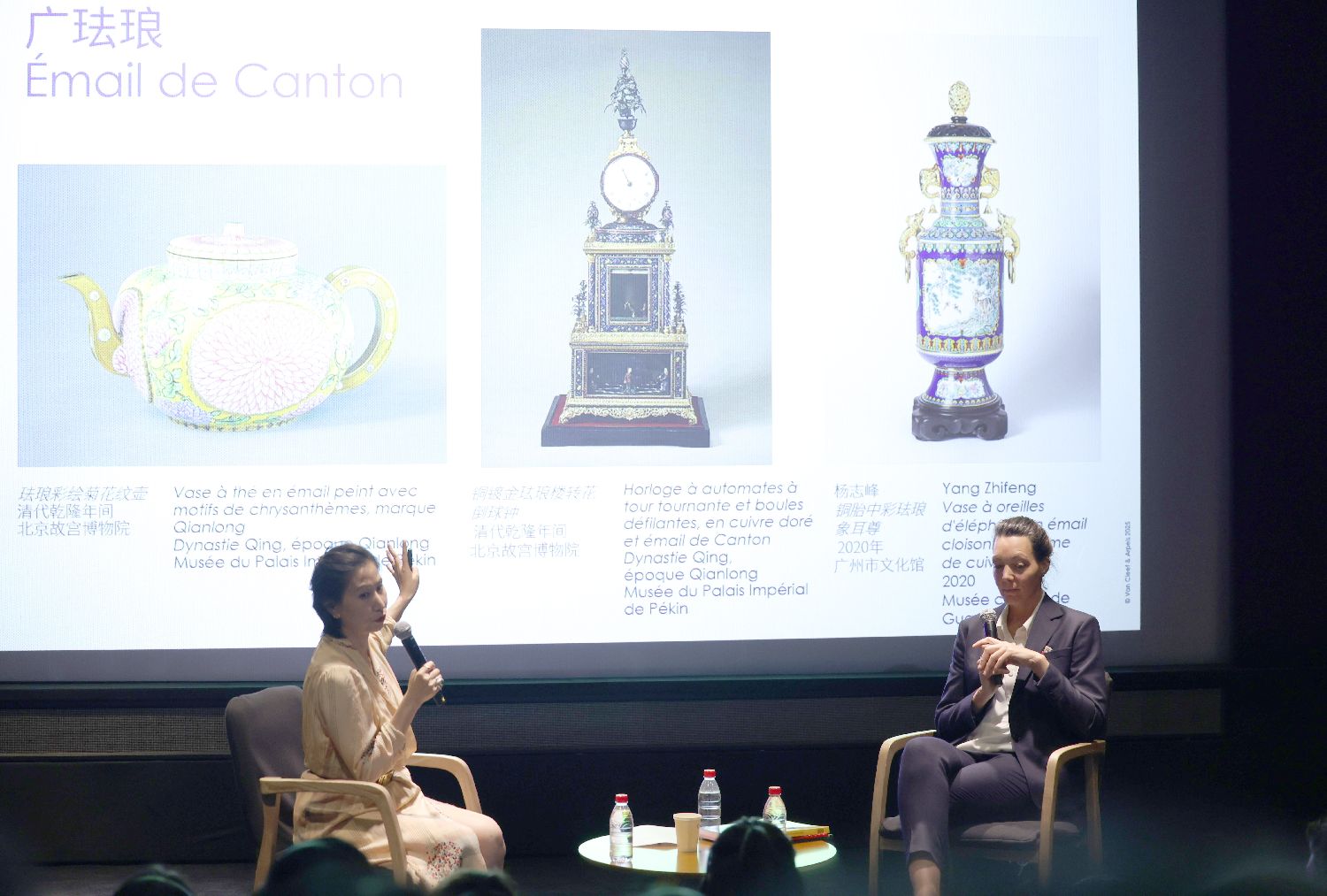 17日,活动现场,法国珐琅工艺大师玛丽·奥伯林(Marie Oberlin)与中国艺术史学者王笑佳带领观众开启一段探索珐琅艺术的旅程。