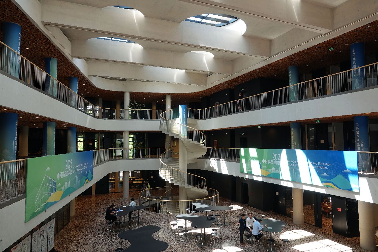 5月19日,北京怀柔,中国科学院大学雁栖湖校区中国-丹麦科研教育中心/中丹学院大楼内。(图片来源:中新社)