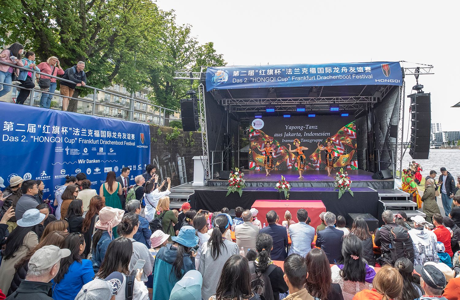 法兰克福位于德国西部美因河畔。5月24日上午,美因河上鼓声雷动,浪花飞溅,观众欢呼声此起彼伏——第二届法兰克福国际龙舟友谊赛在此拉开帷幕,为这座城市带来一场融体育竞技与文化交流于一体的民间盛会。(图片来源:本文图片均自新华社)