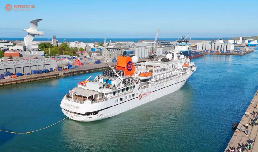 2025年5月16日,全球首家中资背景的极地探险邮轮企业——66度探险邮轮,于英国阿伯丁港口隆重举行旗下旗舰邮轮“海神号(Seaventure)”首航仪式。此次首航不仅是中国极地旅游产业发展的重要里程碑,更是66度探险邮轮践行“以东方视角探索世界极地之美”品牌理念的生动实践,标志着以“华语服务”与“东方文化”为核心的极地探险体验正式迈向国际舞台。