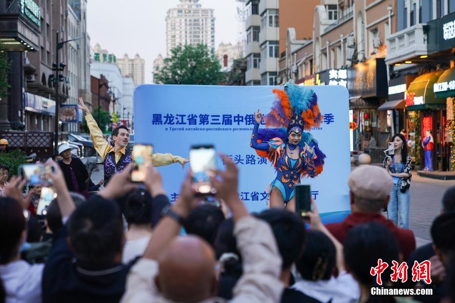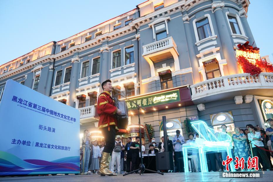 近日,黑龙江省第三届中俄地方文化艺术季街头路演活动启动,在哈尔滨中央大街,俄罗斯艺术家们为民众带来舞蹈、小提琴、巴扬独奏等丰富多彩的节目表演。