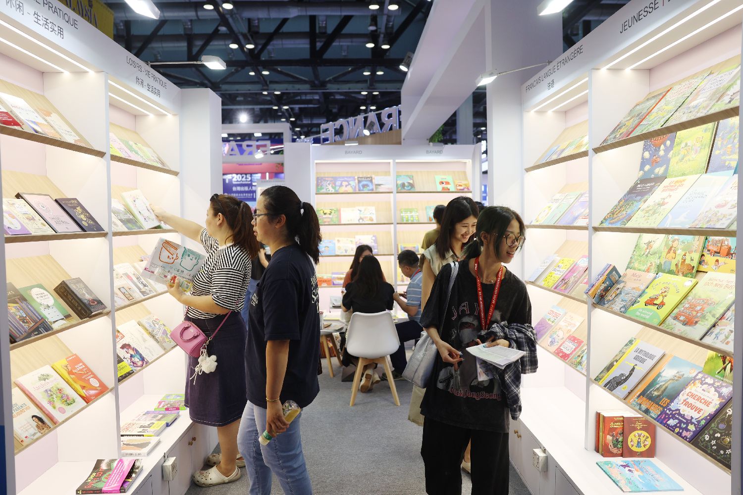 6月18日,读者在法国国家展台内挑选书籍。当日,第三十一届北京国际图书博览会在北京国家会议中心开幕。(李大鹏 摄)