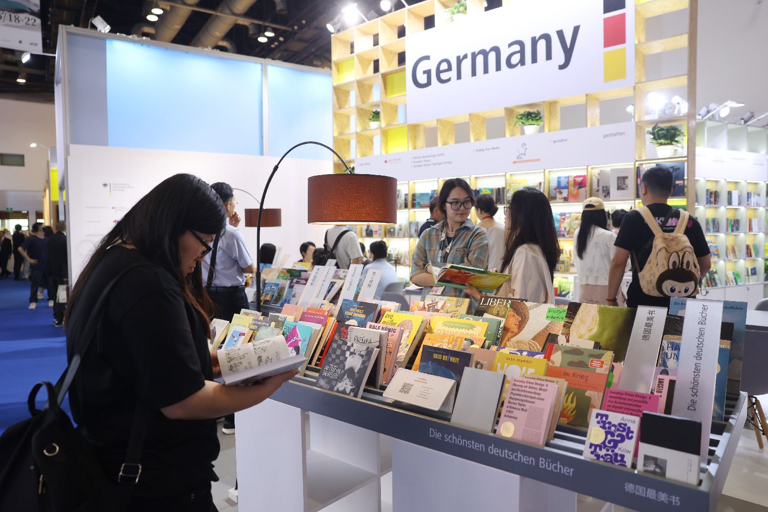 德国国家展台内展出的书籍吸引读者驻足。此届图博会吸引80个国家和地区的1700多家展商现场参展。(李大鹏 摄)