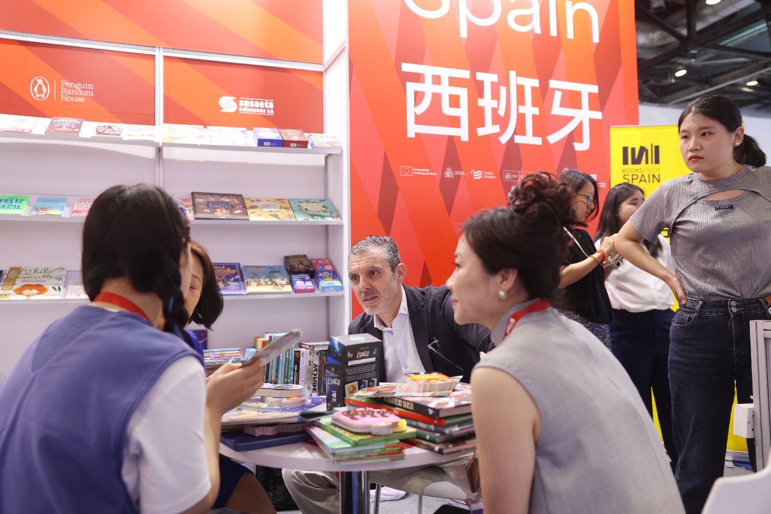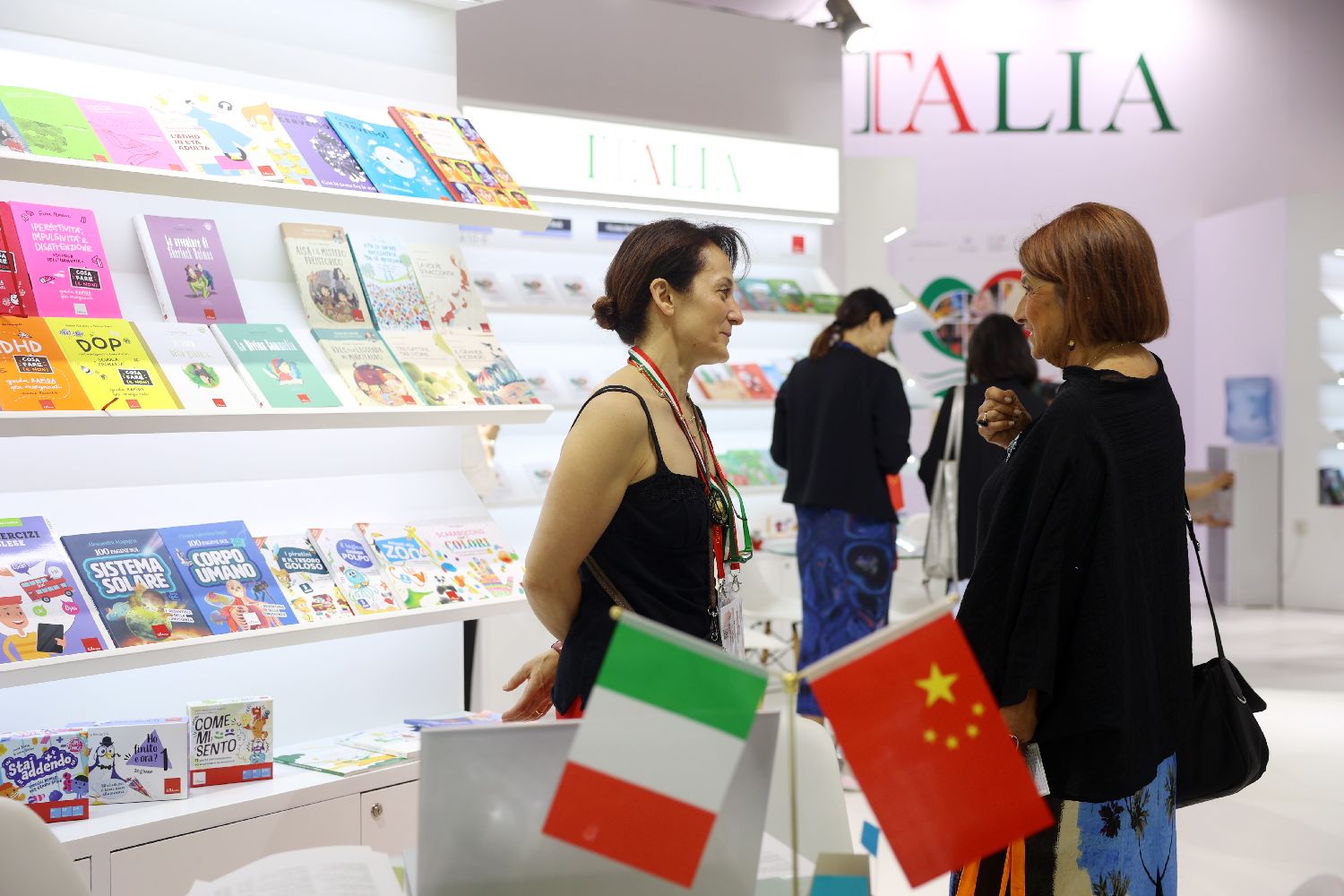 意大利国家展台内,出版从业者正在交流。(李大鹏 摄)