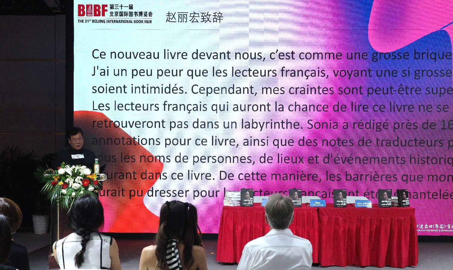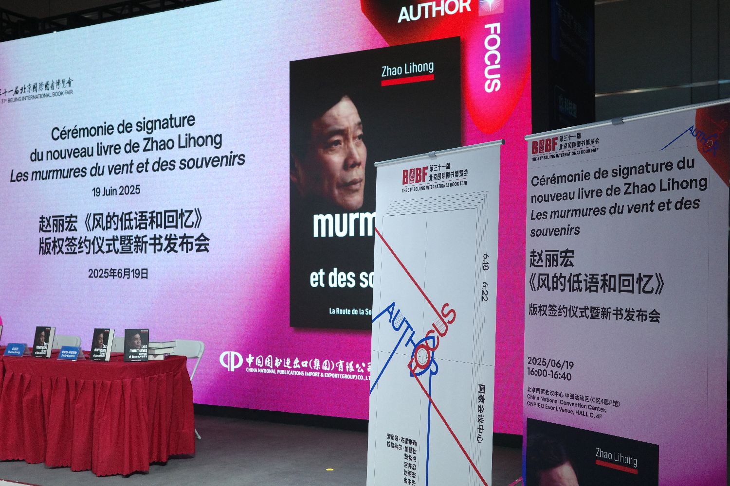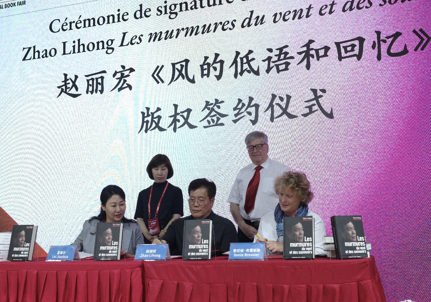 6月19日,在第三十一届北京国际图书博览会(BIBF,下称“图博会”)上,中国诗人、散文家、作家赵丽宏携全新法语散文集《风的低语和回忆》亮相。图为6月19日,《风的低语和回忆》的版权签约仪式暨南新书发布会在北京图博会举行。(图片来源:本文图片均自秋狸 摄)