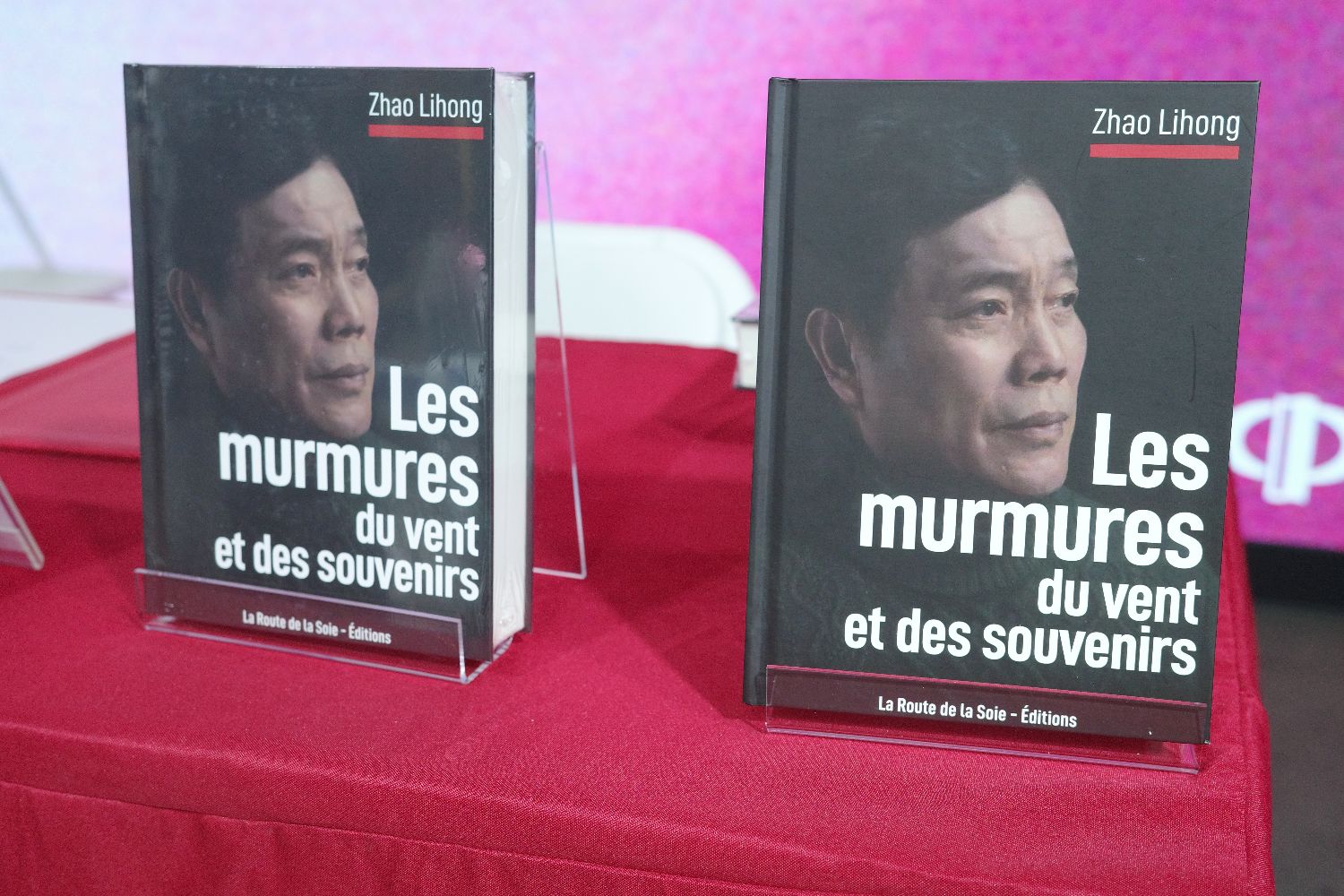 “这本新书就像一块沉重的大砖头。我有点担心法国读者看到这么大一块砖头会望而却步。不过,我的担心可能是多余的。”赵丽宏在致辞中幽默地表示,并感谢了法国出版家索尼娅·布雷斯勒翻译这本书做出的努力。图为赵丽宏的法语散文集《风的低语和回忆》。